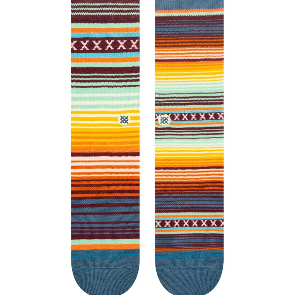 Dürfen wir vorstellen? Die super stylischen Socken von Stance: Curren ST Crew! Sie werten sicherlich jedes Outfit optisch auf – ganz egal, ob in der Freizeit, im Alltag, beim Reisen oder auf dem Fahrrad in die Stadt! Die Socken kommen darüber hinaus in einer tollen Materialkombination, die sich angenehm tragen lässt. Elastische sowie atmungsaktive Eigenschaften kommen nicht zu kurz während der Zehenbereich nicht nur nahtlos ist, sondern auch verstärkt. Top!