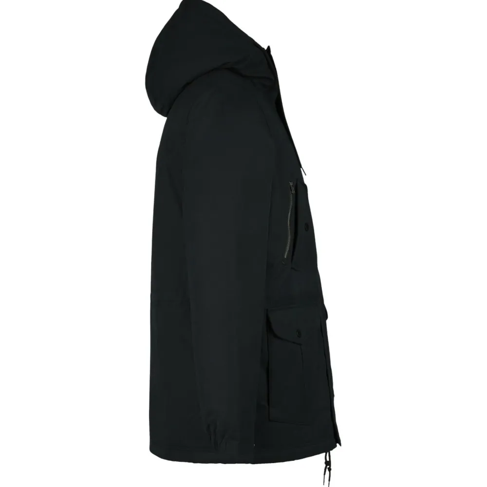 Die dicke Winterjacke wartet mit einem strapazierfähigen Mix aus Baumwolle und Polyester samt umweltfreundlicher, auf Pflanzenbasis hergestellter und PFC-freier Teflon EcoElite Imprägnierung. Mit einer Wassersäule von 5000 mm hält das Obermaterial so auch stärkere Regenschauer effektiv draußen, bietet gleichzeitig angenehme Atmungsaktivität und fühlt sich klasse an. Das softe Sherpa-Innenfutter sorgt für kuscheligen Komfort und angenehme Wärme. Die Kapuze ist ebenfalls gefüttert und wie der Hüftbund per Kordelzug regulierbar.Stauraum ist übrigens auch satt vorhanden. Die beiden Fronttaschen mit Flap, die zwei Brusttaschen und die praktische Innentasche packen vom Smartphone über Schlüsselbund, Geldbeutel oder den kleinen Snack alles weg, was man unterwegs so braucht. Der Schnitt bietet auch auf sportlichen Touren angenehm viel Bewegungsfreiheit und die lässig-coole Optik ist über alle Style-Zweifel erhaben. Klasse!
