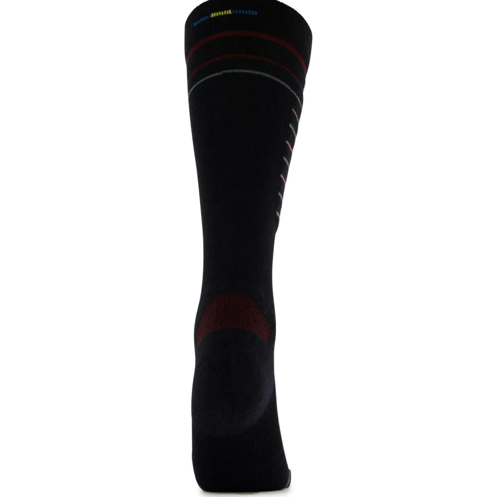 Die Kid’s Merino Ski Socks von Stoic sorgen mit ihrem Wollanteil für warme Füße und nehmen kaum Gerüche an. Mit ihrem langen Schnitt sind sie perfekt für das Tragen in Skischuhe oder Snowboardboots geeignet. An strategisch sinnvollen Bereich sind sie besonders atmungsaktiv und sorgen hierdurch für ein verbessertes Mikroklima. Die verstärkten Fersen bieten zusätzlichen Komfort.