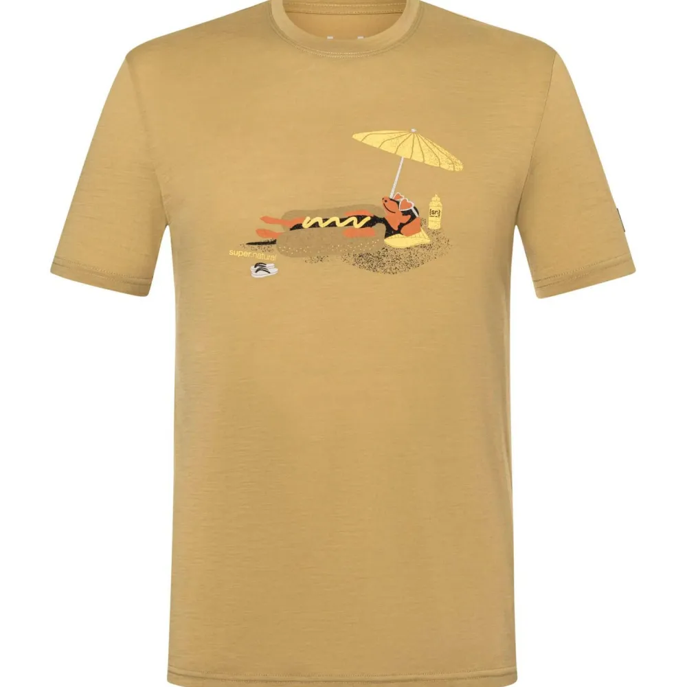 Mit dem Hot Dog Tee von super.natural bist Du lässig und komfortabel unterwegs! Das leichte Merinoshirt punktet mit atmungsaktiver sowie geruchshemmender Funktion – perfekt für entspannte Tage oder spontane Aktivitäten. Der witzige Frontprint bringt Extra-Stil ins Outfit und macht Dein Shirt zum Hingucker. Die Kombination aus Merinowolle und Kunstfaser sorgt für spürbare Bewegungsfreiheit und ein angenehmes Tragegefühl.
