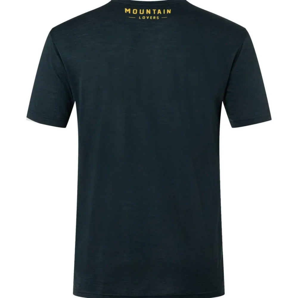 Das Skiing Gear Tee von super.natural fällt dank des Aufdrucks auf der Vorderseite direkt ins Auge. Der macht gute Laune und Lust auf das nächste Abenteuer in den Bergen.