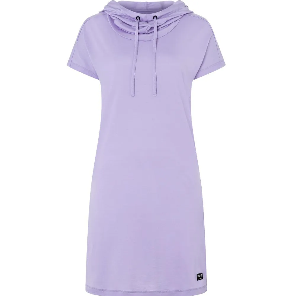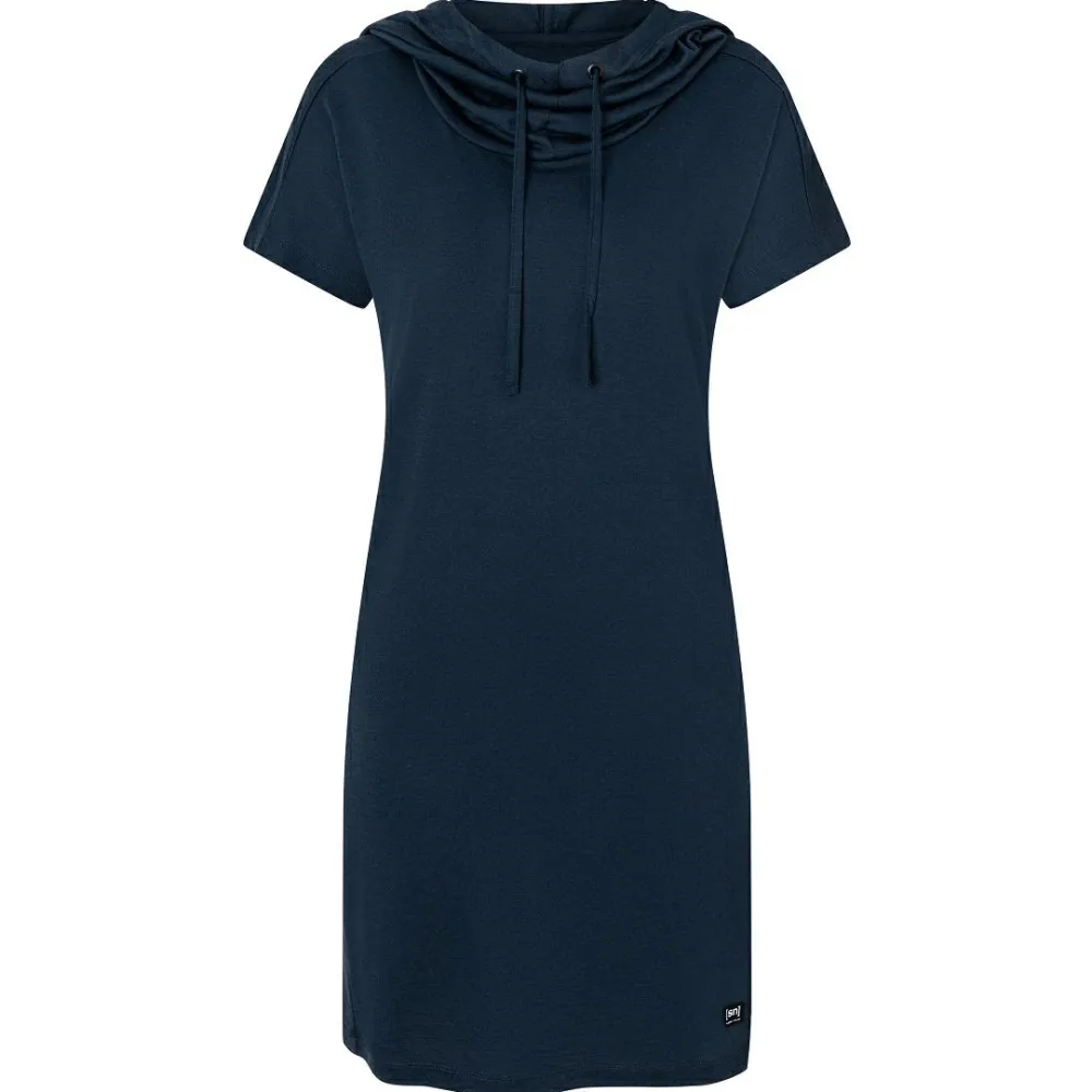 Wenn Du auch an warmen Sommertagen fein gekleidet sein möchtest, ist das Women’s Funnel Dress-Kleid von super.natural definitiv eine Überlegung wert! Der lockere Schnitt ist perfekt für heißes Wetter geeignet, dem Du dann -auch dank des Merino-Anteils- ziemlich cool begegnen kannst. Die große Kapuze, die außerdem mit einem Kordelzug an Deine Bedürfnisse angepasst werden kann, ist einerseits praktisch, als Schutz vor Sonne oder Wind; andererseits stell sie auch ein ziemlich fetziges Design-Statement dar!