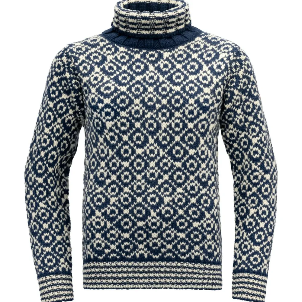 Die traditionelle Bekleidung der norwegischen Fischer – der Svalbard Sweater Highneck von Devold ist ein warmer Wollpullover für kühle Tage. Egal ob als Midlayer beim Winterspaziergang, oder für Abende auf der Hütte vor dem Kamin, der klassischer Norwegerpullover passt immer.Der Pullover besteht aus reiner Schurwolle und bietet damit eine ganze Reihe funktionaler Eigenschaften. Die Naturfaser kann bis zu 33% ihres Trockengewichts an Wasser aufnehmen, ohne sich feucht anzufühlen. Außerdem leitet das Material Feuchtigkeit vom Körper weg und trocknet relativ schnell.