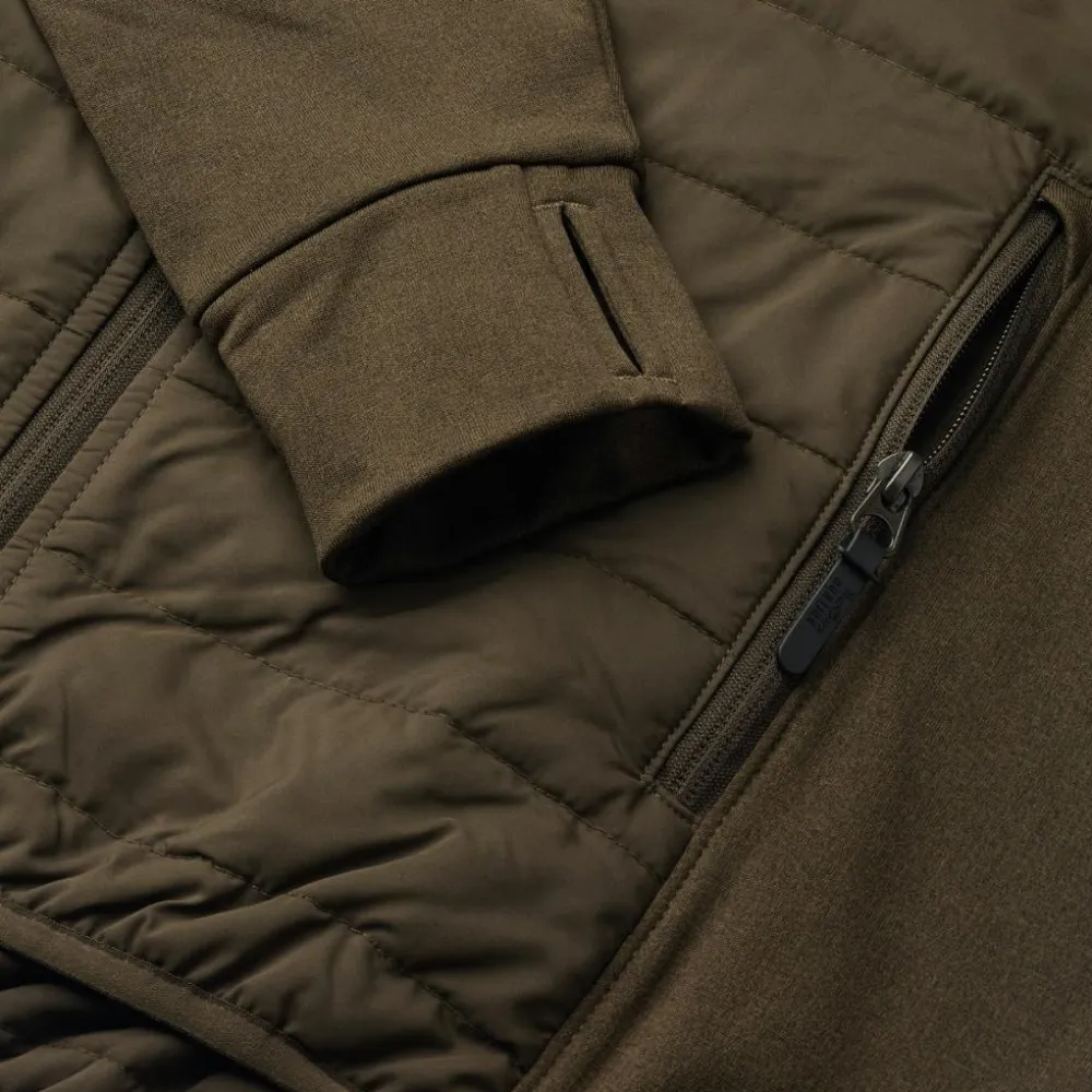 Mit der Sverre von Northern Hunting entscheidest Du Dich für eine leichte und vielseitig tragbare Jacke, die Dich das ganze Jagdjahr hindurch begleiten wird: An milden Tagen dient sie als äußere Bekleidungsschicht und bei winterlicher Kälte als wärmender Midlayer unter einer Außenjacke. Rücken und Front der Hybridjacke sind mit einer isolierenden Kunstfaserfüllung versehen. Für optimale Bewegungsfreiheit und bequemen Tragekomfort sorgen die seitlichen Dehnzonen und Ärmel aus hoch elastischem Gewebe.