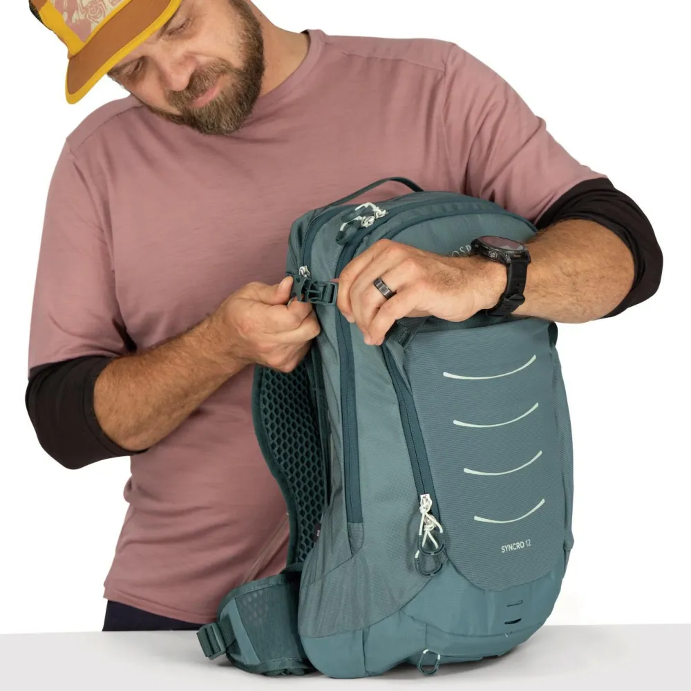 Der Syncro 12 von Osprey ist ein kompakter und praktischer Bikerucksack, der Dich bei Tagestouren begleitet. Durch die gute Unterteilung und das geräumige Innenfach findet hier alles seinen Platz und lästiges Suchen bleibt Dir erspart. Besonders praktisch ist dabei das Organizerfach, in dem Du Dein Werkzeug und kleinere Ersatzteile unterbringen kannst.