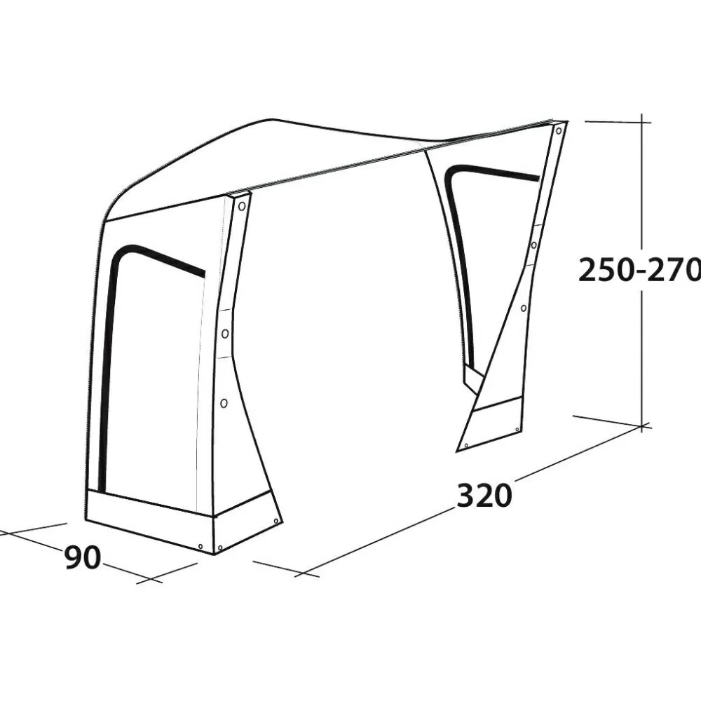 - L320 x B90 x H250-270cm