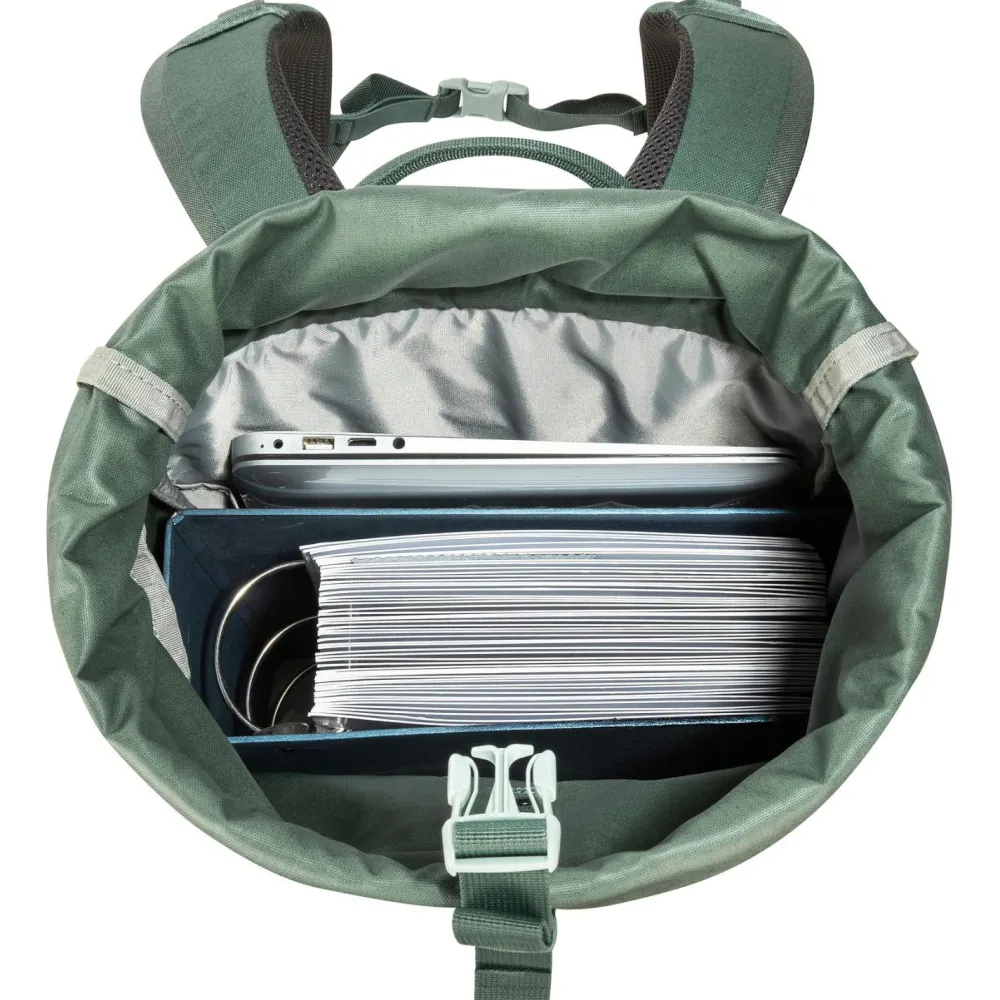 Der Grip Rolltop Pack Kapok 25-Tagesrucksack von Tatonka ist ein praktischer, kompakter Begleiter für den Alltag. Mit einem Fassungsvermögen von 25 Litern bietet er ausreichend Platz für alles Wichtige, was mit muss! Der Rollverschluss ermöglicht Dir schnellen Zugriff auf das Hauptfach, während der gepolsterte Rücken und die ergonomisch geformten Schultergurte für hohen Tragekomfort sorgen. Dank des Brust- und Hüftgurts sitzt das Daypack sauber und wackelfrei. Dein 15-Zoll-Notebook findet im gepolsterten Laptopfach sicheren Platz, und der Rucksack schluckt mühelos einen breiten DIN A4-Ordner.Der Grip Rolltop Pack Kapok 25 gehört zu den All Day Tough-Produkten von Tatonka, auf die eine erweiterte Produktgarantie von zehn Jahren gewährt wird. Zwei praktische Seitentaschen und eine universelle Fixierungsmöglichkeit an der Vorderseite bieten zusätzlichen Stauraum und Flexibilität. Das robuste Gewebe besteht teils aus recyceltem Material und ist PFC/PFAS-frei.