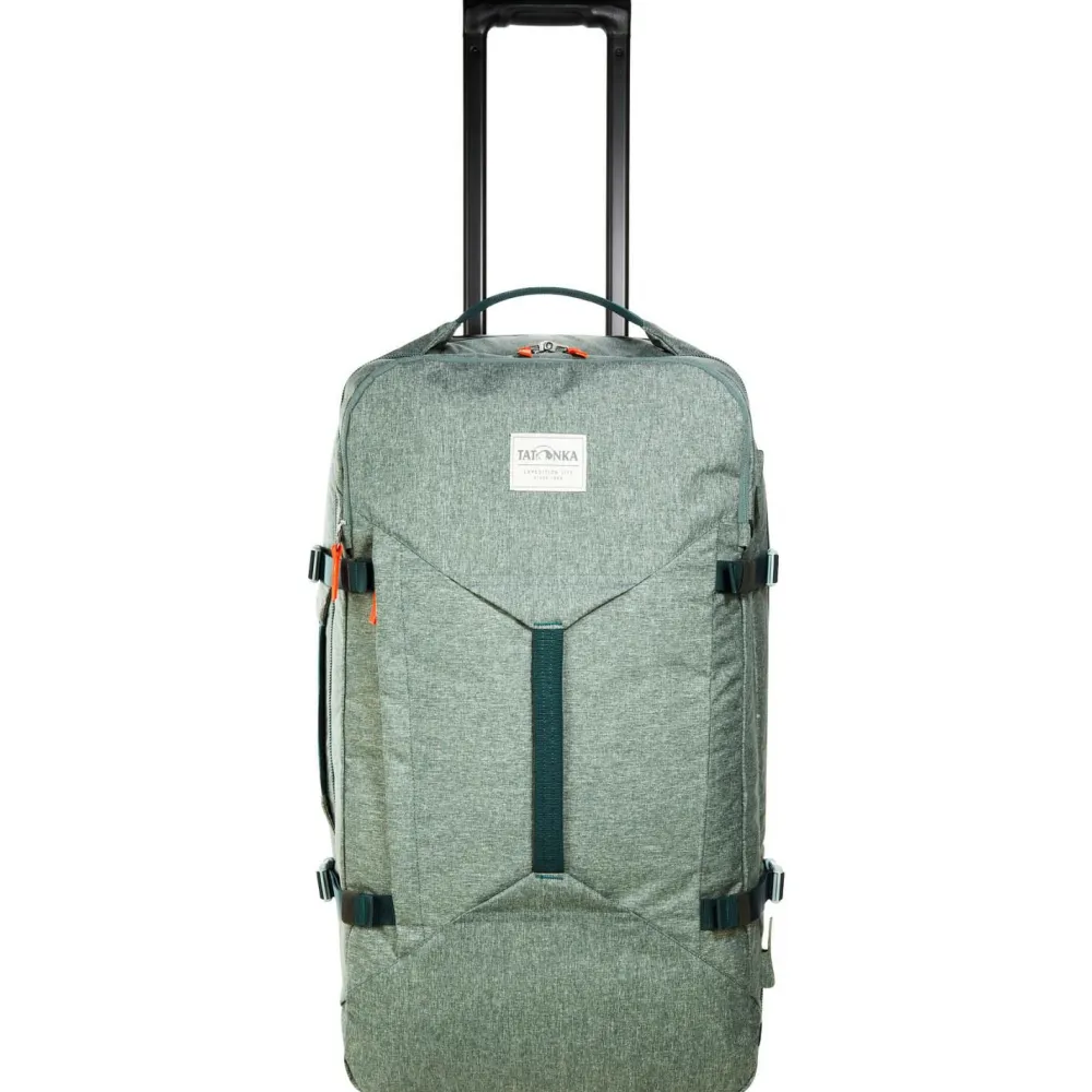 Mit dem Travel Roller 60 von Tatonka reist Du komfortabel und gut organisiert. Der stabile Trolleyrahmen mit leichtlaufenden Rollen und Teleskopgriff sorgt dafür, dass Du auch schweres Gepäck mühelos transportierst. Drei gepolsterte Handgriffe erleichtern Dir das Anheben und Verstauen. Das große Hauptfach mit abschließbarem Reißverschluss lässt sich weit öffnen und bietet Dir viel Stauraum für Kleidung und Ausrüstung.