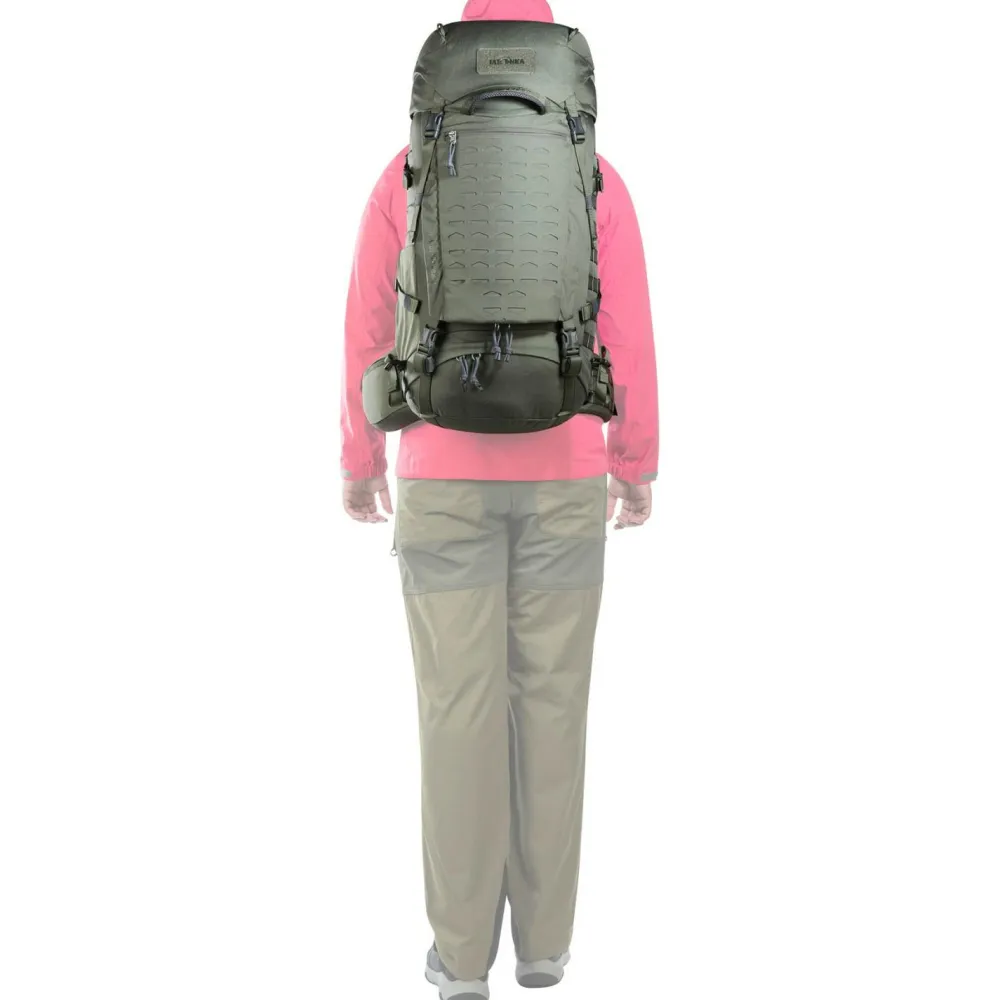 Der Women’s Pyrox BC 40+10-Trekking- und Bushcraftrucksack von Tatonka ist ein klasse Begleiter bei Abenteuern in der Wildnis. Mit einem Volumen von 40+10 Litern bietet er ausreichend Platz für Klamotten, Proviant und Ausrüstung. Der Rucksack ist aus robustem Cordura gefertigt und verfügt über ein modulares, Molle-kompatibles Befestigungssystem. So kannst Du bei Bedarf zusätzliche Taschen und Ausrüstung problemlos anbringen. Das Frame Comfort Light-Tragesystem sorgt für eine optimale Lastverteilung und kann stufenlos an Deine Rückenlänge angepasst werden.