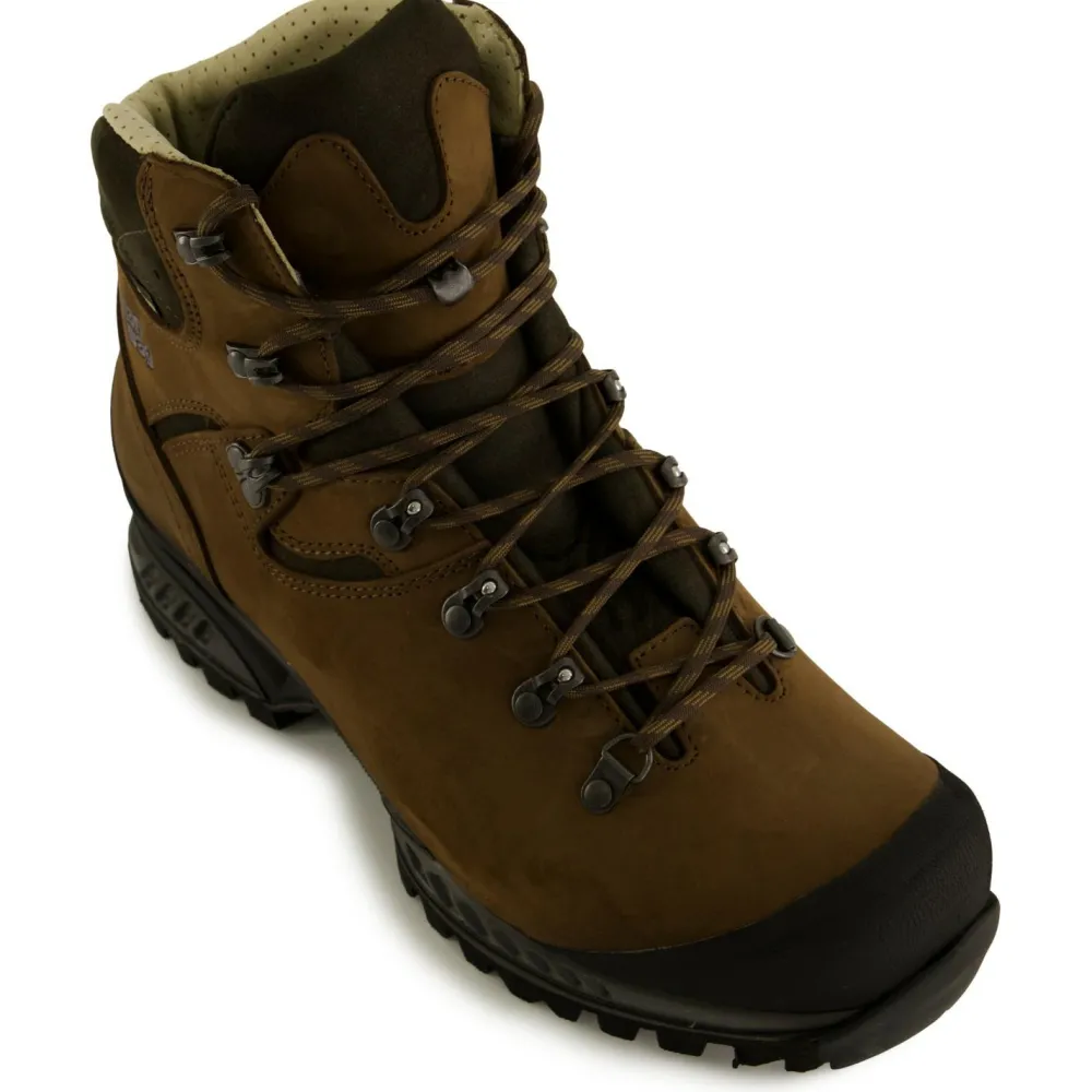 Der Tatra II GTX Narrow von Hanwag ist das geeignete Modell für Männer mit schmalem Vorderfuß wegen seines besonders schmalen Leisten. Der Trekkingschuh besteht aus nachhaltig produziertem Terracare Zero Leder und hat ein GORE-TEX Innenfuter. Das sorgt für ein stets angenehmes Klima im Fuß. Dazu tragen auch noch die Belüftungsöffnungen im Schaftabschluss bei. Der Tragekomfort ist jedoch nicht nur wegen des Klimas sehr hoch: Die angenehme Dämpfung des Sohlenaufbaus und die komfortable Einlegesohle samt Vibramsohle ermöglichen in jedem Terrain einen starken Auftritt. Selbst längere Asphaltstrecken werden damit nicht zur Qual. Dazu tragen auch der hohe, weiche Lederschaft mit den Belüftungsöffnungen bei, die Zwei-Zonenschnürung und die Zunge, die dank der speziellen Zungenhaken nicht verrutschen kann.