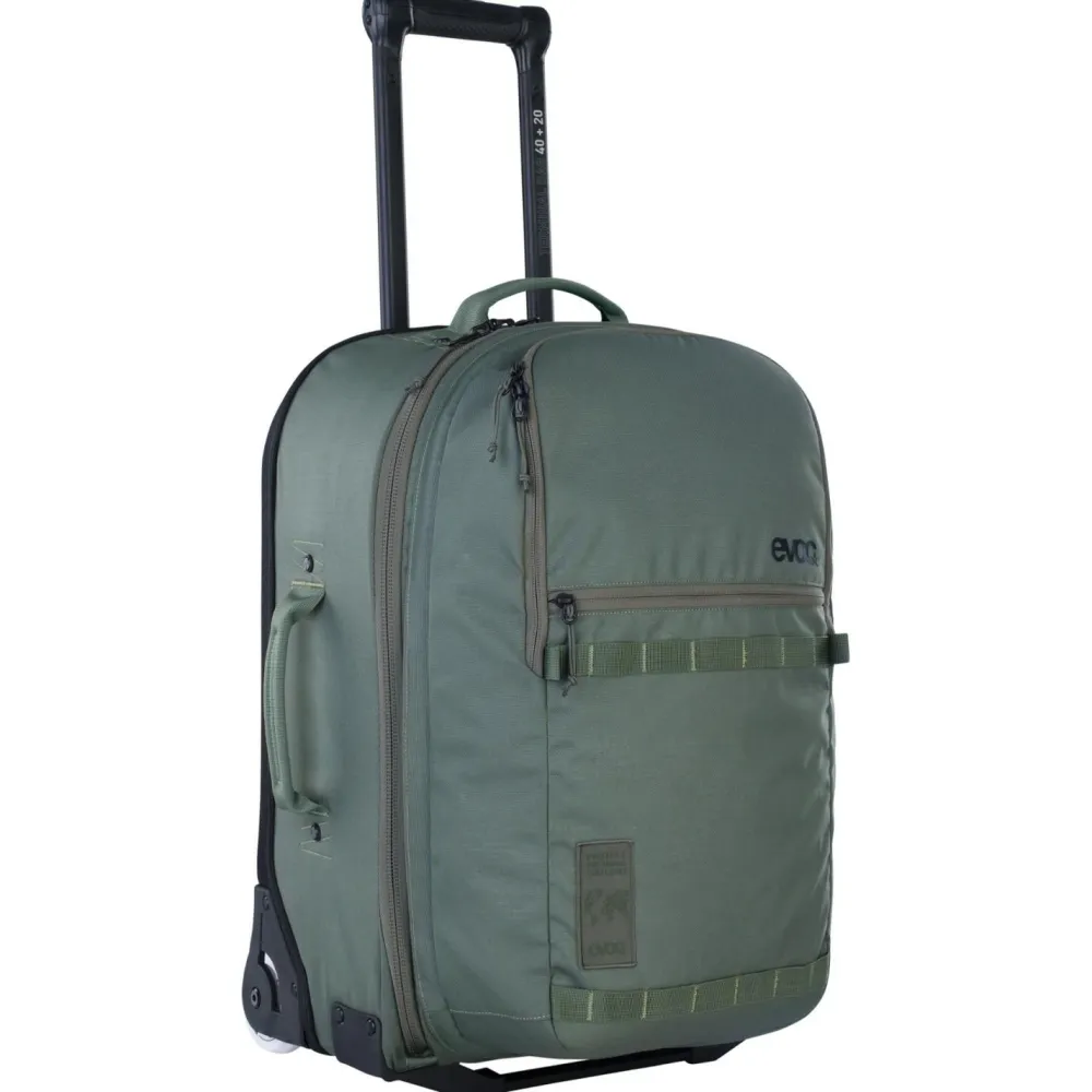 Der Terminal Bag 40+20 von Evoc kombiniert die Funktionalität eines Rollkoffers mit der Flexibilität eines abnehmbaren Tagesrucksacks. Mit 60 Litern Volumen bietet er genügend Platz für Kleidung, Technik und persönliche Essentials, bleibt dank seiner Maße aber handgepäcktauglich (ohne Daypack). Der gepolsterte Laptopbereich schützt Dein Gerät zuverlässig, während das separate Fach im Tagesrucksack wichtige Dinge griffbereit hält und für mehr Übersicht sorgt.