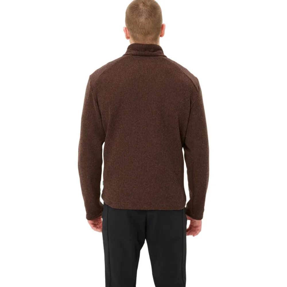 Lässig und gediegen unterwegs: der Tesero Pullover II von Vaude! Der praktische Fleecepullover überzeugt mit seinem komfortablen und funktionellen Hauptmaterial, das vollständig aus recyceltem Polyester hergestellt ist. Es bietet ein angenehmes Tragegefühl mit reichlich Wärme, ohne zu viel Feuchtigkeit aufzunehmen. Deshalb ist der Tesero Pullover nicht nur für den Alltag und die Freizeit geeignet, sondern auch zum Wandern und Reisen.