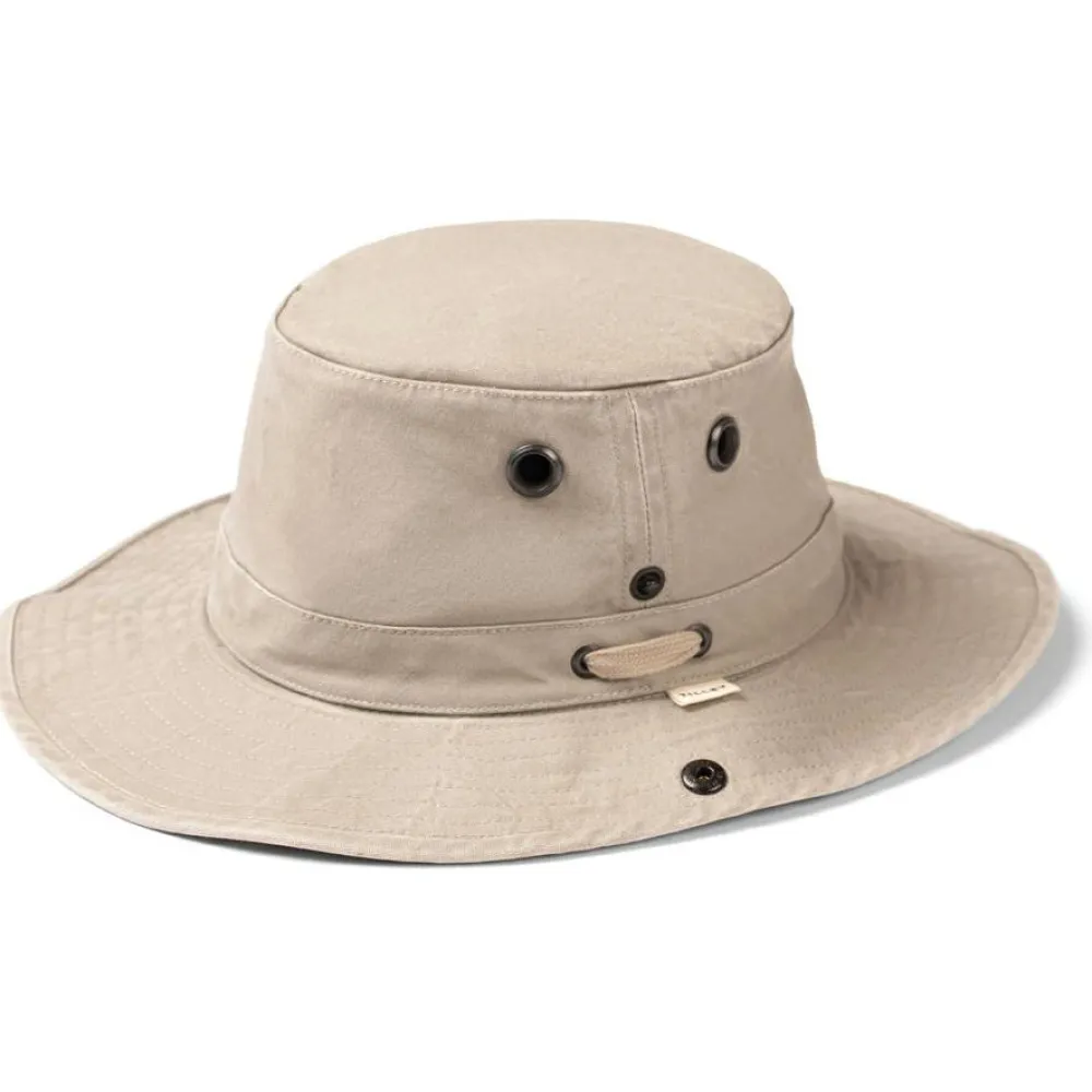 Klassischer Reisehut im Travel-Look – der T3 Wanderer von Tilley sieht bereits aus, als ob er 1000 Kilometer auf Reisen gewesen ist. Das robuste Gewebe wartet nur darauf, dass er weitere 1000 Kilometer um die Welt reisen kann. Der hohe Lichtschutzfaktor und die dauerhaft wasserabweisende DWR-Behandlung machen den Hut zu einem idealen Begleiter rund um die Welt!