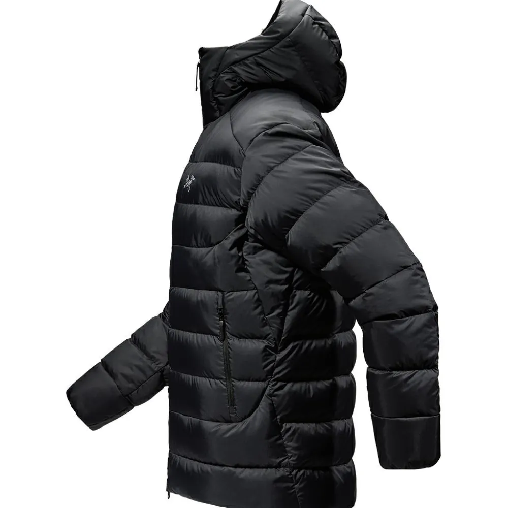 Die Arc’teryx Daunenjacke ist mit zwei warmen Fronttaschen und einer Brusttasche ausgestattet. Alle Taschen werden per Reißverschluss verschlossen. Zwei offene Innentaschen bieten sich zusätzlich für Brillen, Handschuhe oder ähnliche Accessoires an. Die leichte Jacke wärmt hervorragend und kann dabei besonders platzsparend für den Transport komprimiert werden. So begleitet sie Bergsportler bei kühlem Wetter und in Höhenlagen.