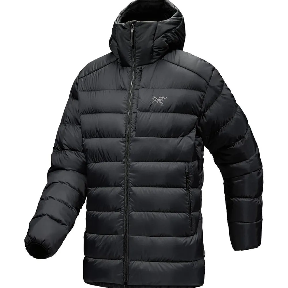 Mit hohem Kragen und isolierter Kapuze wärmt die Thorium Hoody Daunenjacke von Arc’teryx auch am Kopf und im Halsbereich sehr gut. Die Jacke ist mit einer Füllung aus RDS-zertifizierter Gänsedaune ausgestattet und wärmt mit 750 cuin Bauschkraft in ihren horizontal angeordneten Kammern. Dank Down Composite Mapping und zusätzlichem Coreloft sorgt die Daunenjacke für eine exzellente Wärmeverteilung und ist dabei gleichzeitig atmungsaktiv und feuchtigkeitsregulierend.