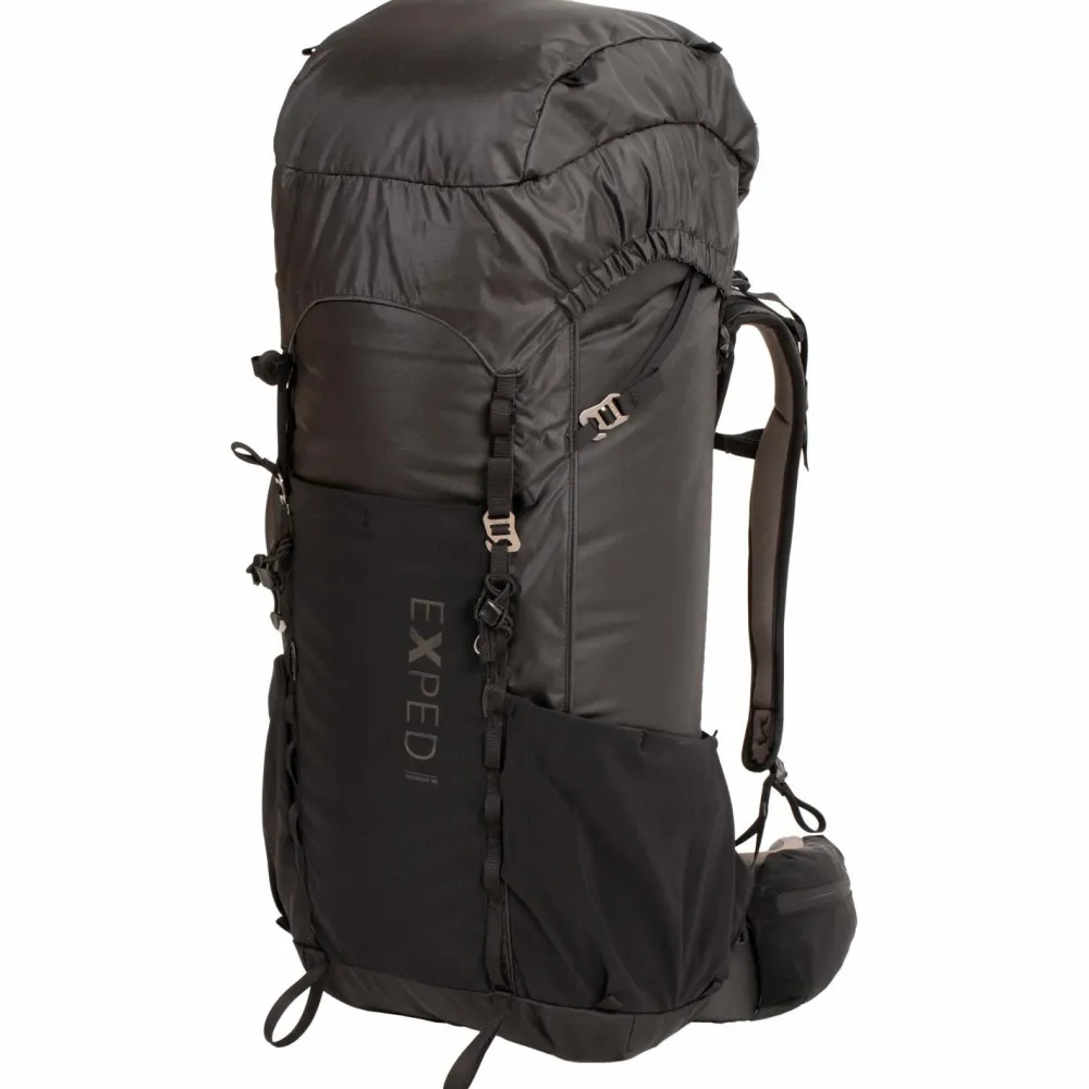 Ein Leichtgewicht zum Trekken, das ist der Trekkingrucksack Thunder 50 von Exped! Er überzeugt mit viel Stauraum und kommt mit geringem Gewicht aus. Sein Material ist besonders abriebfest und zudem stark wasserabweisend. Ideal für wechselnde Bedingungen in der Natur! Praktisch sind die drei Zugriffe aus das geräumige Hauptfach. Auf sein Equipment greift man entweder vom Deckel, von der Front oder von der Seite aus zu und erspart sind damit lästiges Suchen. Das Deckelfach ist höhenverstellbar und passt sich an den Gepäckumfang an. Trinkflaschen verstaut man in den seitlichen Meshfächern. Kleinigkeiten im Deckelfach, am Hüftgurt oder im Frontfach und für Stöcke und weitere Hardware gibt es zahlreiche Befestigungspunkte an der Front des Rucksacks.