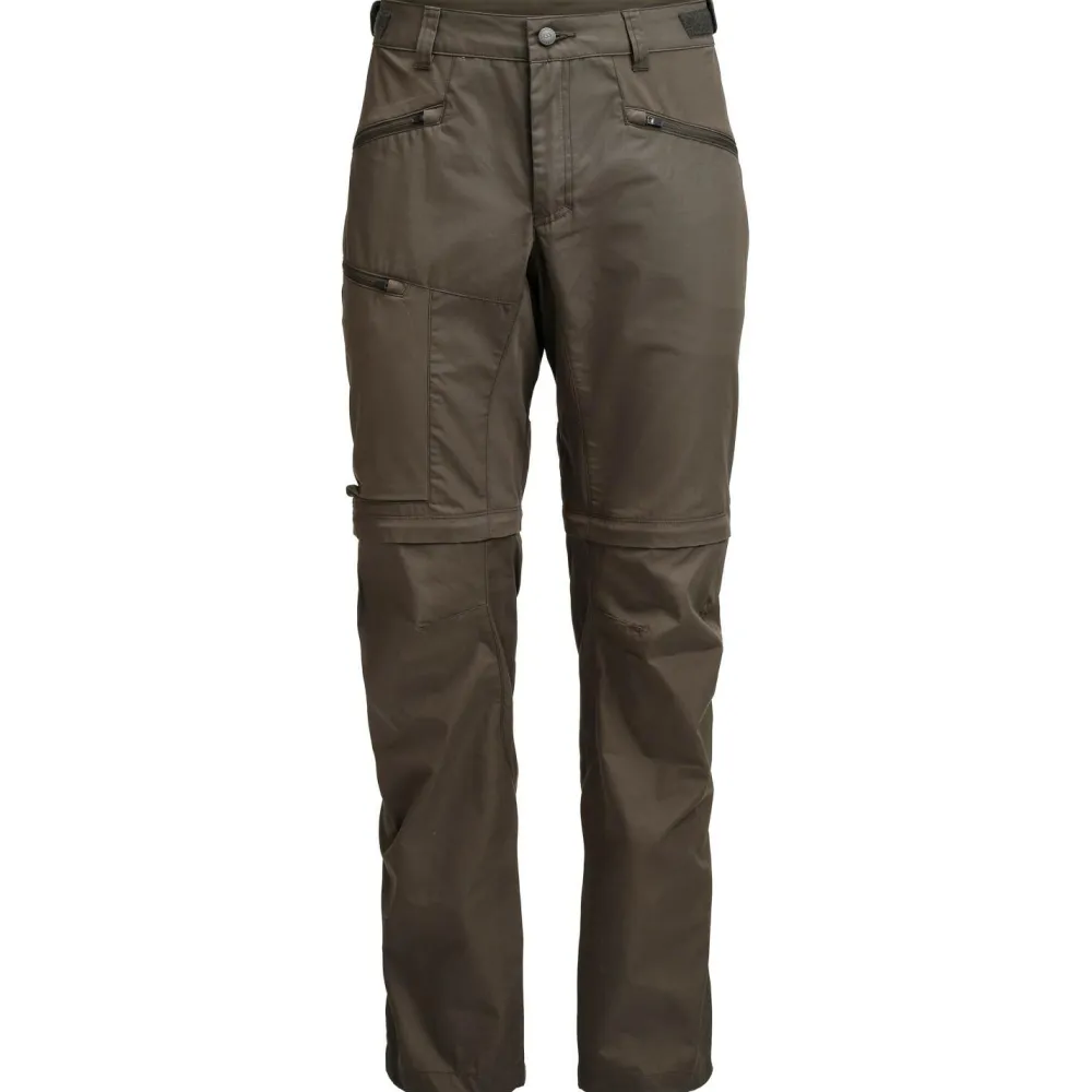 Die Tived Zip-Off Pant von Lundhags ist der perfekte Allrounder für Wanderungen in warmen Gefilden! Die Trekkinghose verwendet ein strapazierfähiges und nachhaltiges Mischgewebe aus recyceltem Polyester und Bio-Baumwolle, das schnelltrocknende und windabweisende Eigenschaften mit sich bringt. Dank PFC-freier DWR-Imprägnierung stellen auch leichte Regenschauer kein Problem dar. Die elastischen Einsätze im Gesäßbereich sorgen für zusätzlichen Tragekomfort und garantieren eine optimale Bewegungsfreiheit. Mit den praktischen Reißverschlüssen oberhalb der Knie lässt sich die lange Wanderhose im Handumdrehen in eine Shorts verwandeln. Zwei RV-Fronttaschen und eine RV-Beintasche bieten zudem sicheren Stauraum für wichtige Wanderutensilien.