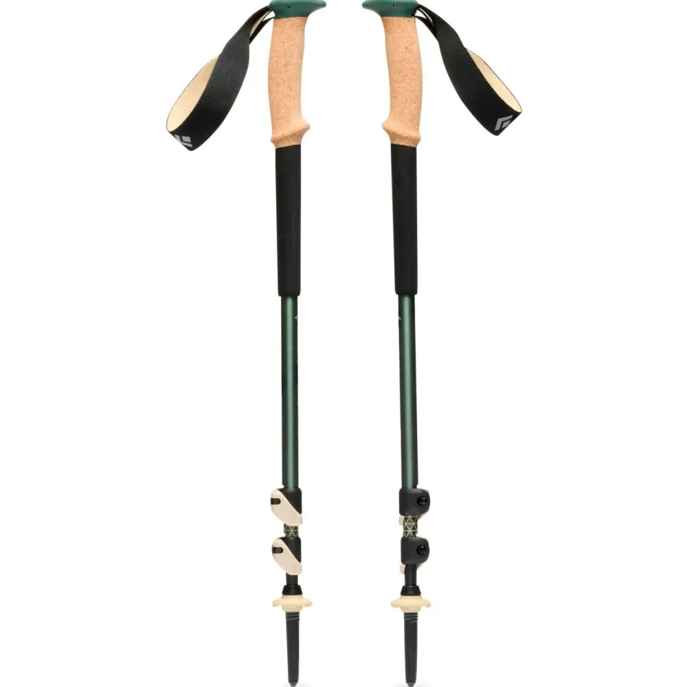 Ob Winter oder Sommer, die Trail Cork Trekking Poles von Black Diamond können immer mit von der Partie sein. Durch ihre gute Ausstattung lassen sich diese Trekkingstöcke vielseitig einsetzen und erleichtern bergauf wie bergab das Gehen im Gelände. Die Griffe bestehen bei diesem Modell aus Kork und bieten gerade in der wärmeren Jahreszeit einen guten Komfort. Außerdem sind sie ergonomisch geformt und liegen gut in der Hand. Durch das praktische FlickLock-System lassen sich die Stöcke schnell auseinanderziehen und zusammenschieben. Sie können außerdem stufenlos auf die gewünschet Länge eingestellt werden. Die Spitzen sowie die Teller sind austauschbar, sodass die Stöcke je nach Jahreszeit und Terrain unterschiedlich ausgestattet werden können.