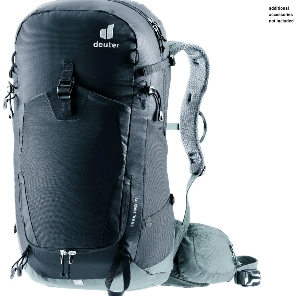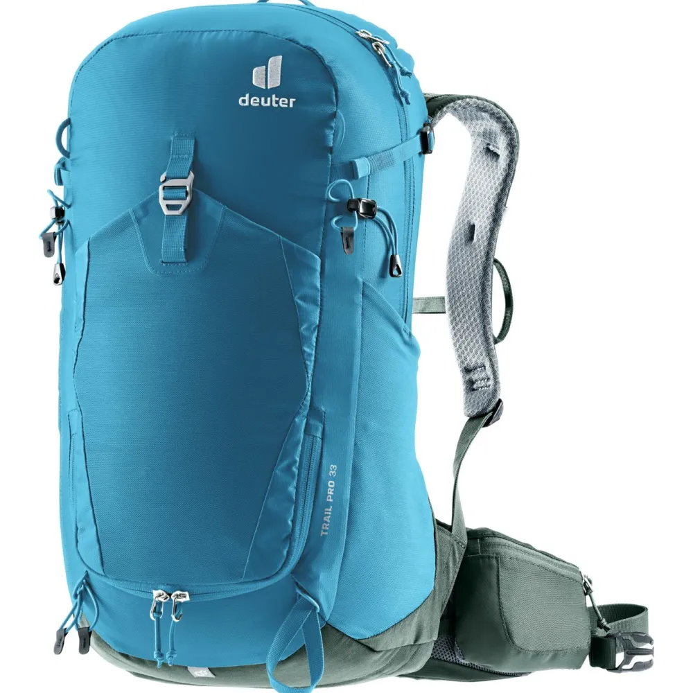Die Schultergurte sind beweglich gelagert und engen Dich bei anspruchsvollen Kletterpassagen am Berg nicht ein. Der Wanderrucksack ist mit Taschen am Hüftgurt konstruiert, welche sich unterwegs jederzeit bequem erreichen lassen. Die abnehmbare Regenhülle, eine Halterung für Eispickel oder Wanderstöcke und das Wertsachenfach im Inneren machen den Trail Pro 33 von deuter zur ersten Wahl für Deine nächste Tour.