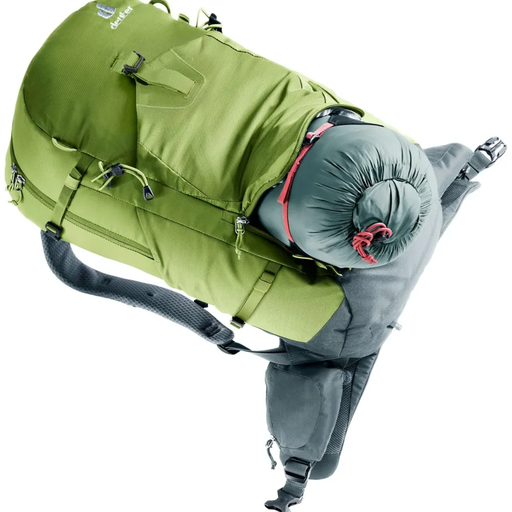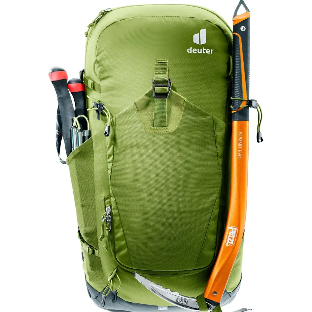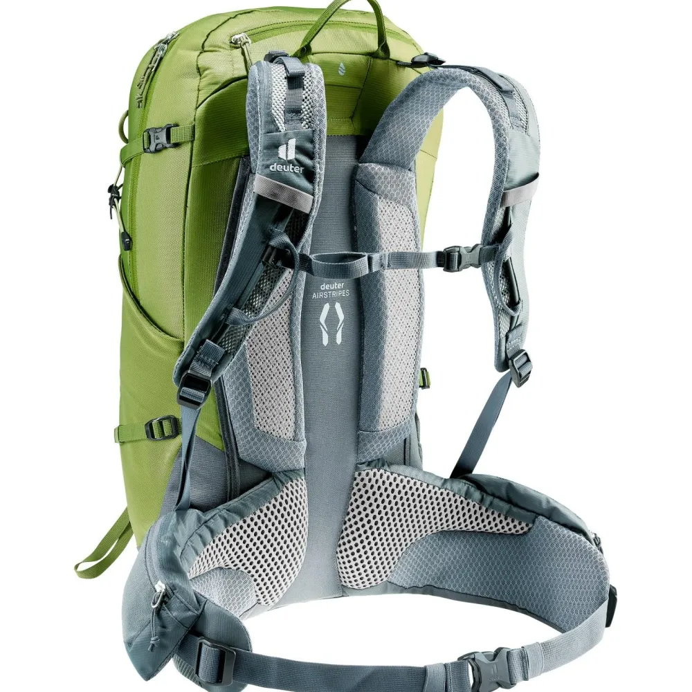 Durch die robuste Konstruktion eignet sich der deuter Trail Pro 33 ideal als Wanderrucksack für Wanderungen, Klettersteige und mehrtägige Hüttentouren in den Bergen. Der Tourenrucksack ist zum Teil aus recyceltem Material hergestellt. Feuchtigkeit wird durch das atmungsaktive Mesh-Gewebe der Airstripes Konstruktion gezielt von Deinem Rücken nach außen hin abgeleitet. Der integrierte Rundprofilrahmen und die anpassbaren Lastenkontrollriemen sorgen bei jeder Bergtour für eine optimale Lastenverteilung.