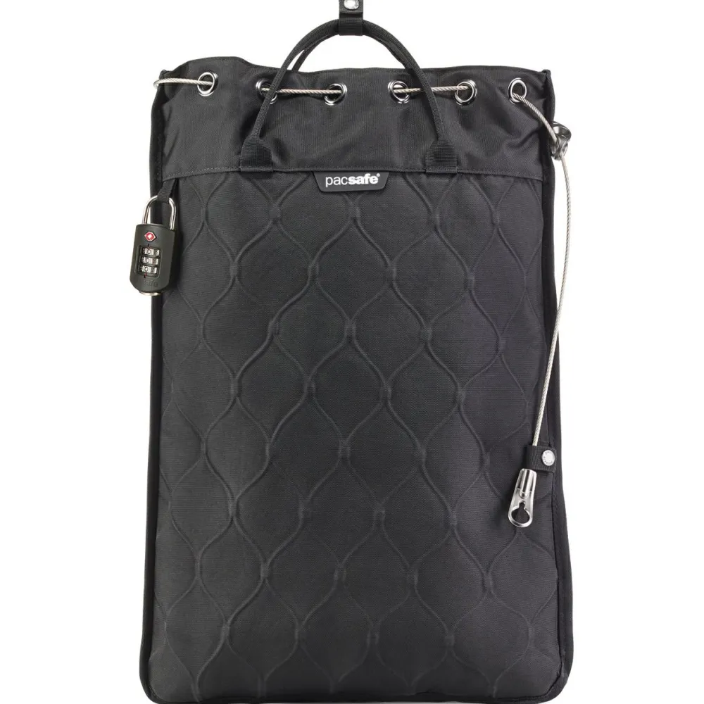 Mit dem Travelsafe 12 L GII von Pacsafe sind Wertgegenstände wie zum Beispiel die Reisedokumente, das Laptop und Kompaktkameras absolut sicher verstaut. Der abschließbare Tragesafe braucht dafür einfach nur an einen festen Gegenstand angeschlossen zu werden und schon kann man die ganze Sache entspannter angehen. Das wasserabweisende Außenmaterial besteht aus robustem Gewebe, in das ein hochfestes Edelstahlnetz eingearbeitet ist. Daher kann der Travelsafe 12 L GII von Dieben auch nicht einfach aufgeschnitten werden, um an den wertvollen Inhalt zu gelangen. Die Innenseite des Tragesafe ist mit weichem Fleecegewebe ausgekleidet, so gibt es keine Kratzer und der Inhalt bleibt leicht erkennbar. Der Pacsafe 12 L GII hat ein Volumen von 12 Litern und ist daher groß genug, um auch ein 15 Zoll Laptop aufzunehmen. Der Tragesafe ist ideal geeignet zum Backpacking, auf Reisen oder für den Campingurlaub!