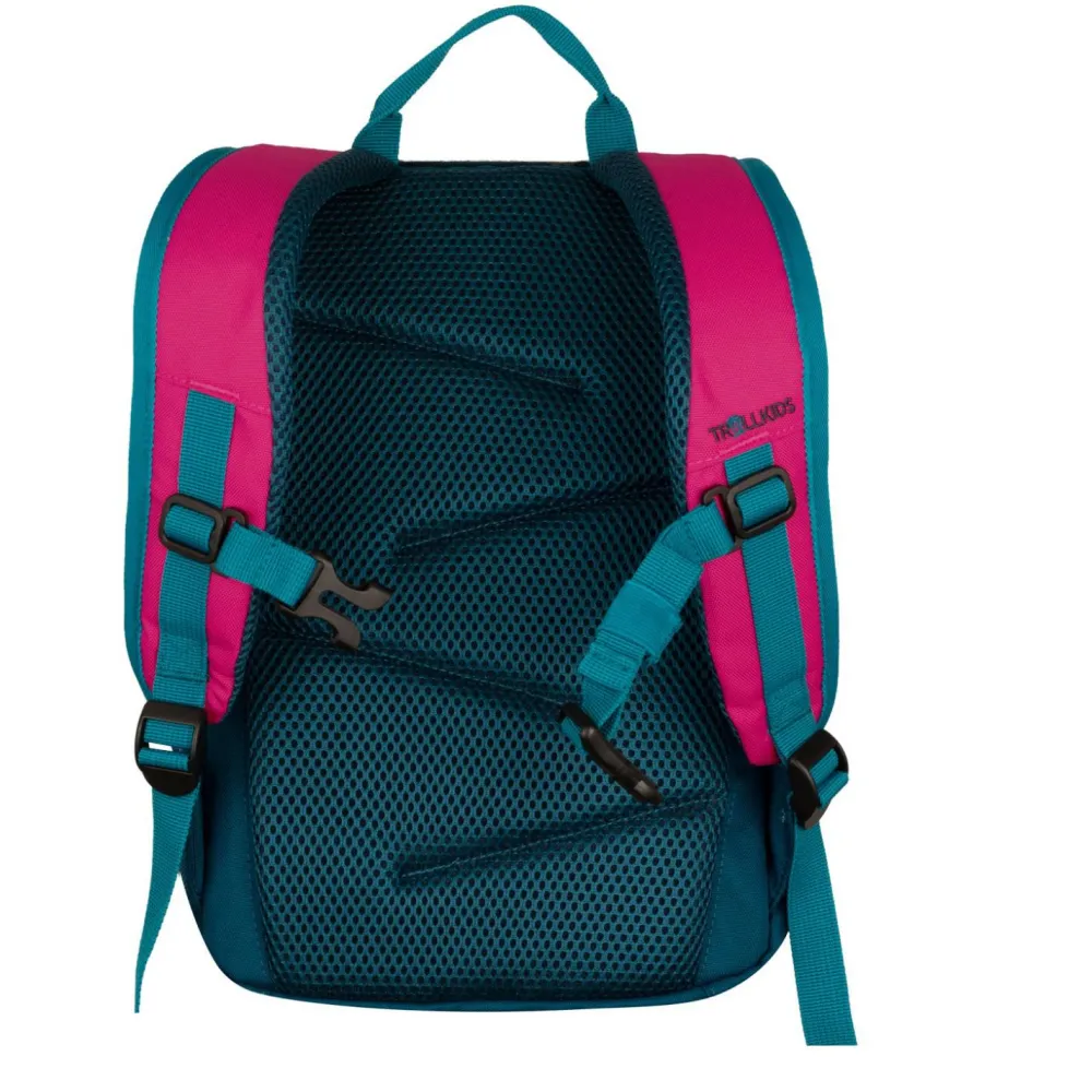 Für Wanderungen und Tagesausflüge ist der Kid’s Skjorta Pack 10 von Trollkids bestens geeignet. Dieser Daypack bietet zahlreichen Dingen, die unterwegs benötigt werden, problemlos Platz. Neben dem Hauptfach verfügt der Rucksack noch über eine Fronttasche und zwei elastische Seitenfächer. Durch den gepolsterten Kontaktrücken ist er angenehm zu tragen und drückt nicht. Die Schulterträger lassen sich mit wenigen Handgriffen anpassen und sorgen im Zusammenspiel mit dem Brustgurt für einen guten Sitz. Praktisch: Der Rucksack kommt mit einer Regenhülle, die den Inhalt auch bei anhaltendem Niederschlag zuverlässig schützt.