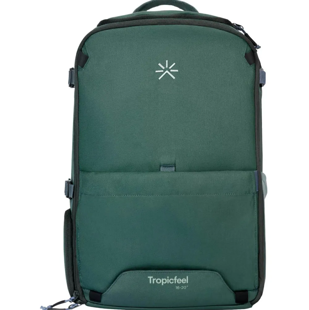 Der Nest 16-20 von Tropicfeel deckt als Daypack ein praxisnahes Spektrum ab: 16 Liter im Grundzustand, erweiterbar auf 20 Liter. Wenn Du unten den Reißverschluss öffnest und die zusätzliche Tasche entfaltest, bekommst Du rund 4 Liter Extra‑Volumen.