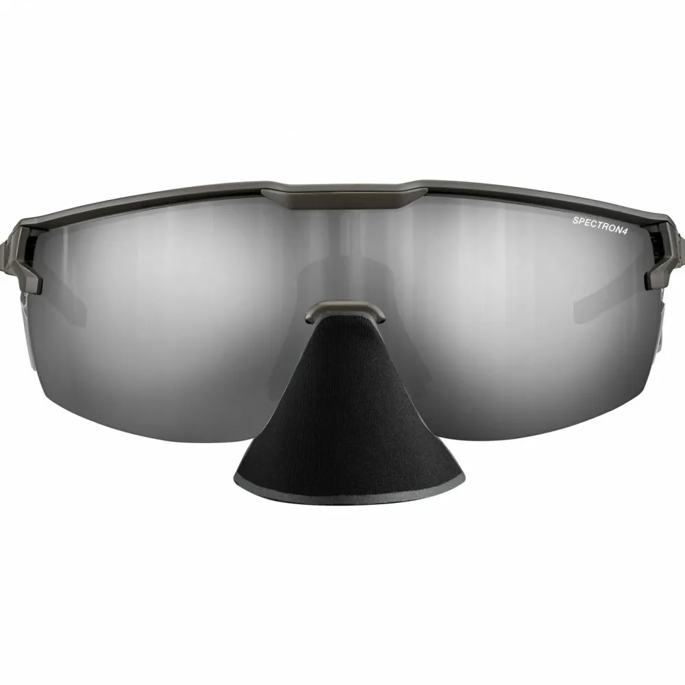 Für Hoch- und Skitouren bei strahlendem Sonnenschein ist die Ultimate Cover Spectron4 (VLT 5%) von Julbo bestens geeignet. Diese Gletscherbrille bring alles mit, was es für den Einsatz im Hochgebirge und auf Gletschern braucht. Der Rahmen ist dabei äußerst leicht und gut belüftet, sodass die Brille weder störend wirkt, noch zum Beschlagen neigt. Verstellbare Bügel mit Beschichtung sorgen zusätzlichfür einen optimierten Sitz der Brille. Die große Panoramascheibe entspricht außerdem der Schutzklasse 4 und bietet so auch an Sonnentagen auf dem Gletscher ausreichend Schutz.