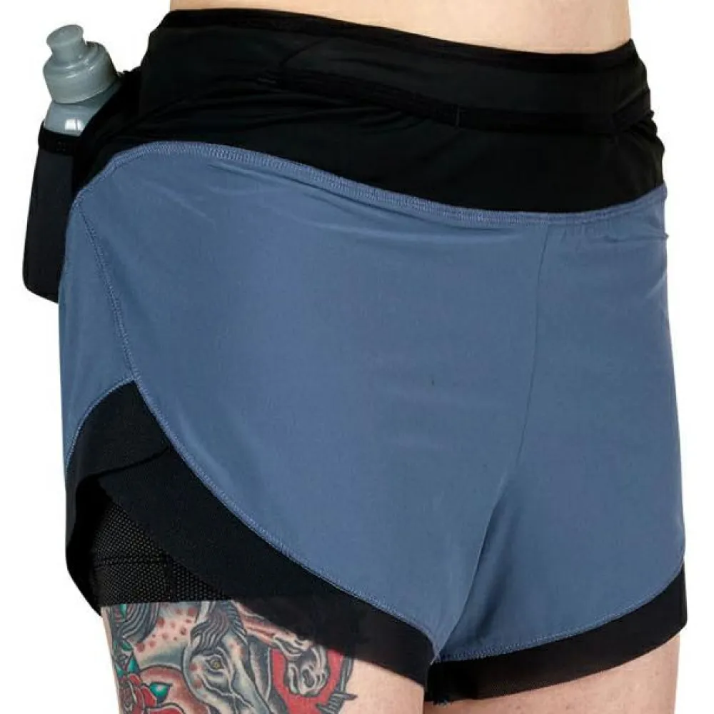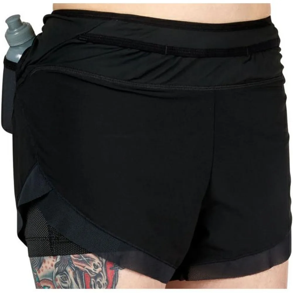 Schnell und leichtgängi, auch mit Ausrüstung: die Women’s Hydro Shorts von Ultimate Direction! Die ausgeklügelte Laufshorts mit Mesh-Innenslip wartet mit einem integrierten Stauraum für die mitgelieferten Wasserflaschen sowie einer Rückentasche für Snacks, Jacke oder andere Utensilien auf. Dank des Hydro Hammock-Futters, des Zwei-Wege-Stretch-Meshs sowie der exakten Taillenregulierung scheuert auch bei schnellem Lauf nichts und es fliegt kein Material umher. Zudem ist diese integrierte Lösung atmungsaktiver als die herkömmliche Kombination von Laufgürtel oder Laufweste mit normaler Hose. Perfektioniert wird die Women’s Hydro Laufshorts durch ihre magnetische Schnalle für einfaches An- und Ausziehen!