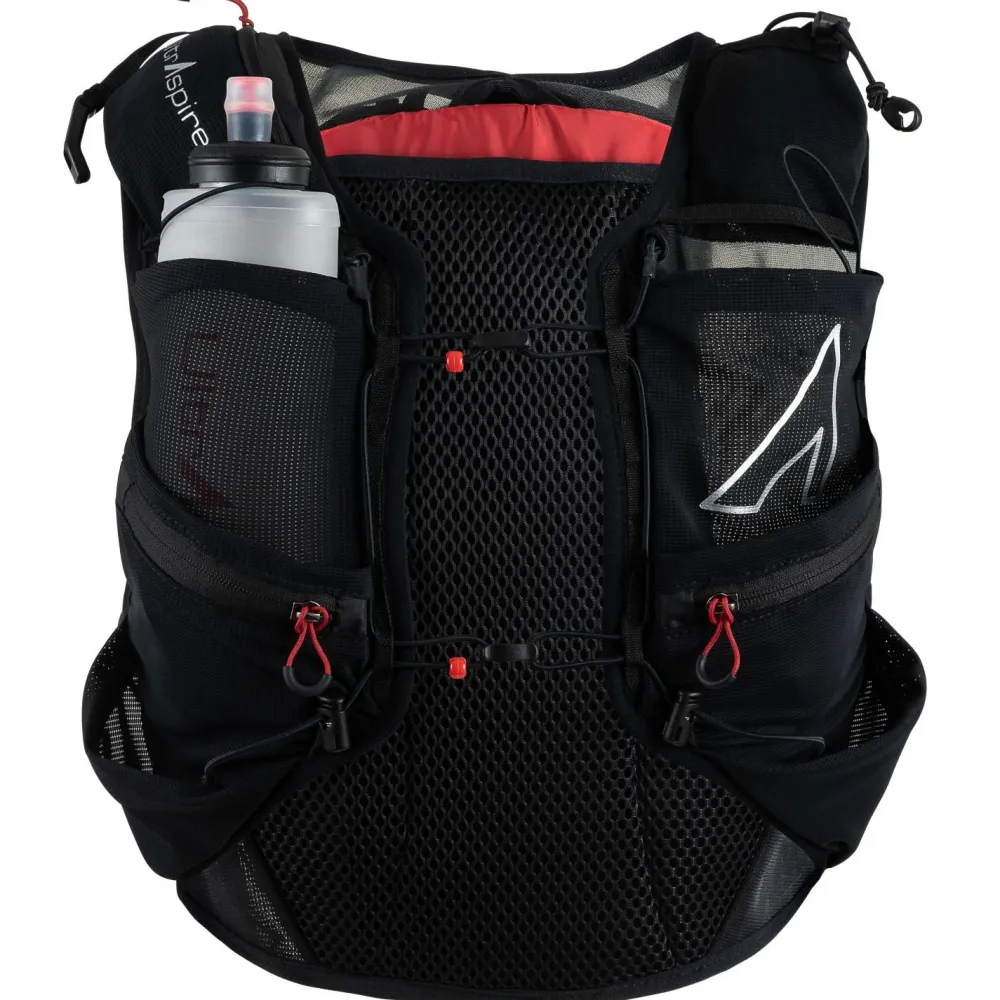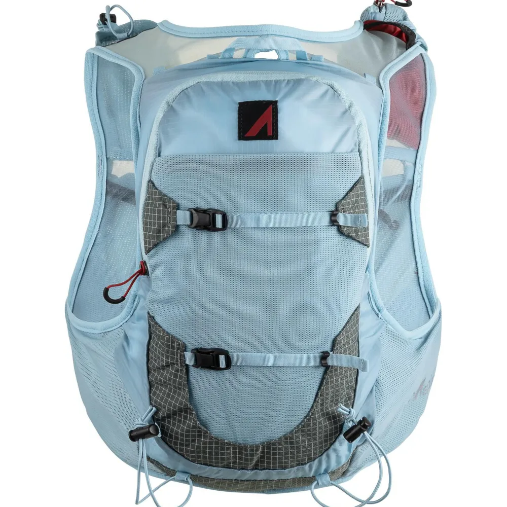 Das MaxO2 Form System erlaubt Dir, die Passform mit nur einem Zug individuell anzupassen, ohne Deine Atmung zu behindern. Die weichen Kanten aus Mikrofaser-Polyester verhindern Scheuerstellen, auch bei stundenlangem Tragen. Besonders praktisch: 12 Taschen, davon sind 10 während des Laufens erreichbar und ermöglichen Dir schnellen Zugriff auf alles Wichtige, von Gels über Smartphone bis hin zu Stöcken. Zwei 800-ml-Softflasks sind bereits dabei, zusätzlich ist die Weste mit einem 2-Liter-Trinksystem kompatibel.