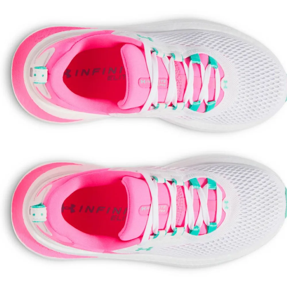 Dieser neutrale Laufschuh bietet Dir die perfekte Kombination aus Flexibilität und Dämpfung für lange Trainingseinheiten auf Straßen und befestigten Wegen.Das atmungsaktive Mesh-Obermaterial hält Deine Füße auch bei intensiven Läufen angenehm kühl. Die extra weiche Polsterung an Zunge und Kragen sorgt für optimalen Komfort und ein einfaches Anziehen. Der Fersenbereich wurde speziell entwickelt, um sanftes Landen und mehr Stabilität zu garantieren. Mit der federnden UA HOVR+ Dämpfung wirst Du bei jedem Schritt unterstützt und spürst die Energierückgabe, die Dich mühelos voranbringt.Ob für lange Trainingseinheiten oder entspannte Runden – mit dem Women´s Infinite Elite 2 bringt Dich weiter. Schnüre ihn und erlebe Laufkomfort auf Under Armour- Art!