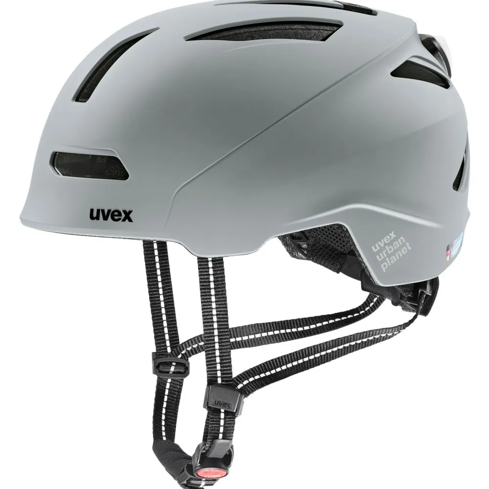 Der Urban Planet LED von Uvex ist ein robuster und nachhaltiger Begleiter für Tages- und Nachtfahrten im Großstadtdschungel! Bei diesem Radhelm kommt eine stabile Hartschalenkonstruktion zum Einsatz, die aus recycelten und biobasierten Materialien gefertigt ist. Das anatomische 3D IAS Verstellsystem von Uvex erlaubt eine individuelle Größenanpassung und sorgt zusammen mit dem stufenlos verstellbaren FAS Gurtband-System und dem einhändig bedienbaren Monomatic Verschluss für einen sicheren und passgenauen Sitz.