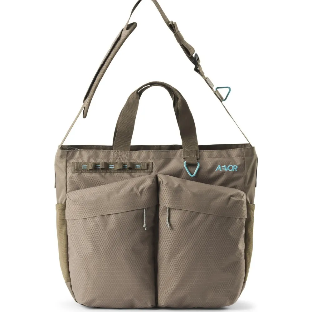 In der geräumigen Utility Tote Bag von AEVOR bekommst Du alles unter, was Du für Deinen Arbeitsalltag oder Deine Freizeit brauchst. Dokumente, Laptop, Regenjacke und Verpflegung finden ihren Platz. Ein verstellbarer, gepolsterter Schultergurt sorgt für mehr Tragekomfort und ein Aluminium-D-Ring gibt Dir bequemen Zugriff auf Deine Schlüssel. Ausgestattet mit einer PFC-freier Imprägnierung wird dafür gesorgt, dass Deine verstauten Sachen bei leichten Regenschauern trocken bleiben. Zudem zeichnet sich die Utility Tote Bag vor allem durch ihre Robustheit aus, die durch das Außenmaterial aus recyceltem Nylon gewährleistet wird.