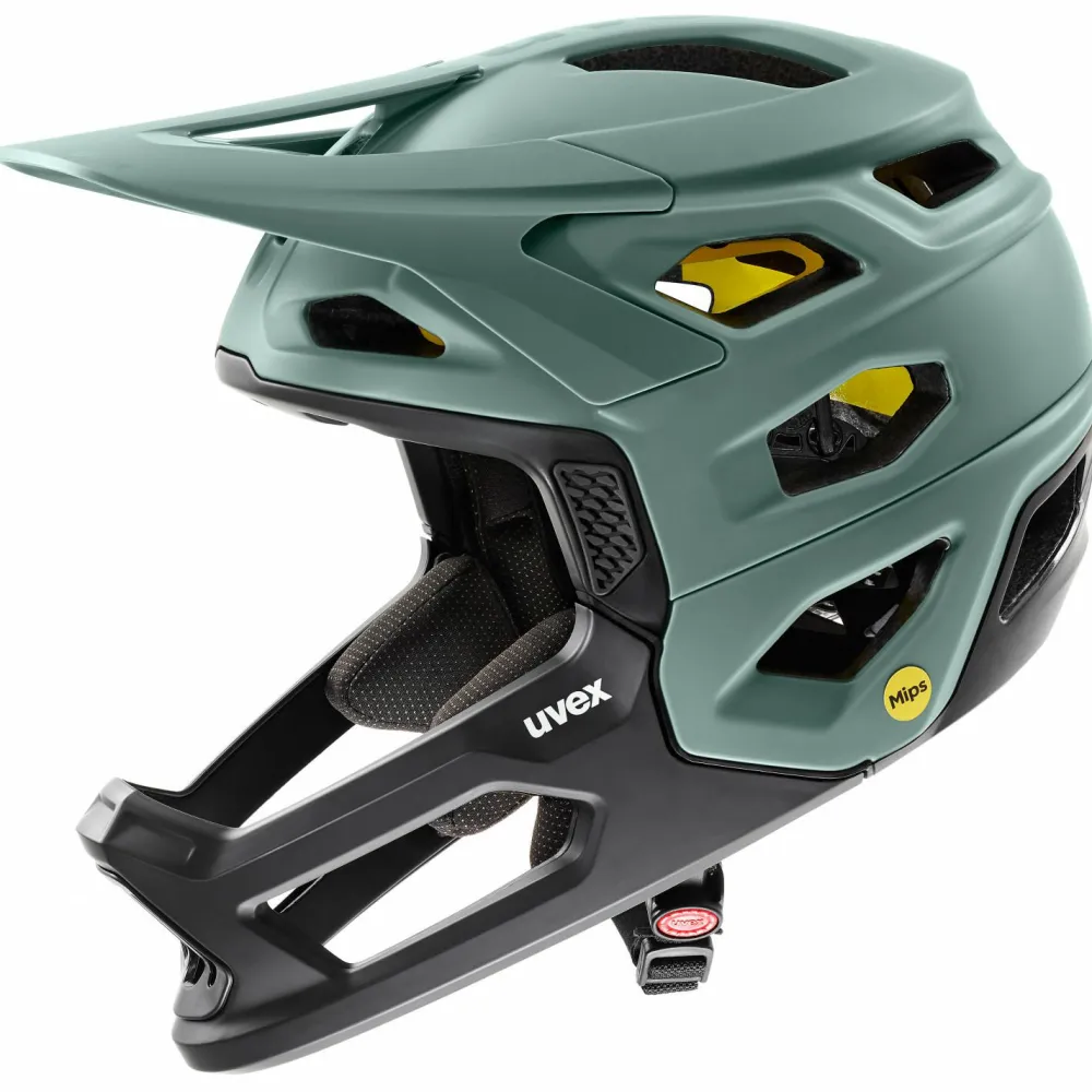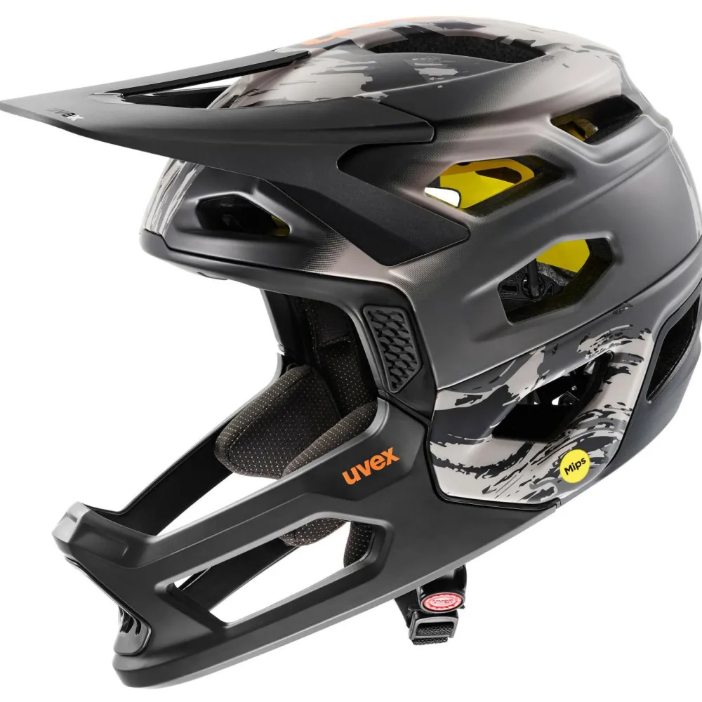 Der Revolt MIPS von Uvex bietet maximalen Rundumschutz beim Mountainbiken und Downhillfahren, ohne Abstriche in Sachen Komfort zu machen! Der Fullface-Helm setzt auf die hauseigene Multi Inmould Technologie von Uvex, bei der die schützende Innenschale aus EPS-Schaum untrennbar in die äußere Polycarbonatschale eingeschäumt wird. Zudem kommt das ausgeklügelte MIPS Aufprallschutzsystem zum Einsatz, das im Falle eines Sturzes die Rotationskräfte reduziert und dadurch vor Gehirnverletzungen schützt. Das anatomische IAS Verstellsystem von Uvex ermöglicht eine individuelle Größenanpassung und sorgt zusammen mit dem einhändig bedienbaren Monomatic Verschluss für einen sicheren und passgenauen Sitz.
