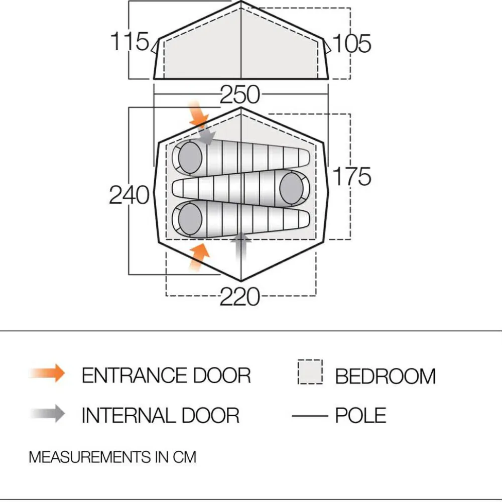 Aufgebaut wird das Zelt mit leichtem, kompaktem Gestänge, das mit dem Tension Band System stabilisiert wird. Das Gurtsystem sorgt bei richtungswechselndem Wind und starken Böen für die nötige Stabilität. Über Clips kann es bei schönem Wetter entfernt werden und erhöht den Wohnkomfort im Innenraum wieder. Zusätzliche Abspannleinen ergänzen das Konzept. Mit dabei ist ein Packsack in dem das Nevis 300 klein verstaut wird und so in jeden Rucksack passt!