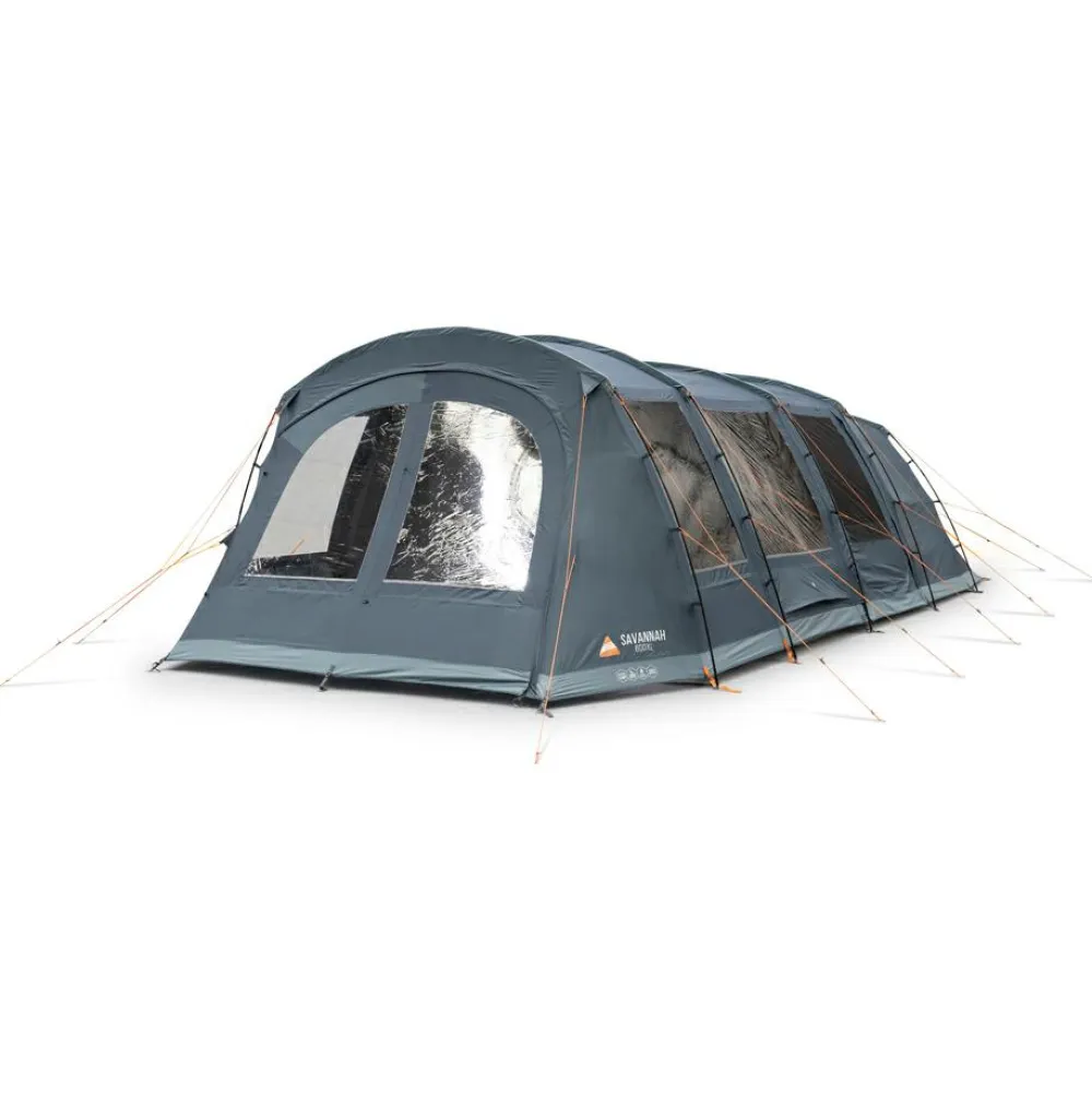 Schlafe länger dank der King Size Midnight Bedrooms, die für einen großartigen und komfortablen Nachtschlaf mit viel Platz sorgen. Der Schlafbereich kann in zwei Kabinen unterteilt, oder komplett genutzt werden. Die großen Diamond Clear-Fenster lassen tagsüber Licht in den Wohnbereich des Savannah Air 600XL fallen und können nachts oder bei Hitze mit den aufrollbaren Vorhängen abgedeckt werden. Das Sentinel Fabric ist stark und strapazierfähig und bietet mit einer Wassersäule von bis zu 4.000 mm hohen Schutz. Der mitgelieferte, zusätzliche Zeltbodenschutz schützt und verlängert die Lebensdauer von Zeltboden und Zelt.