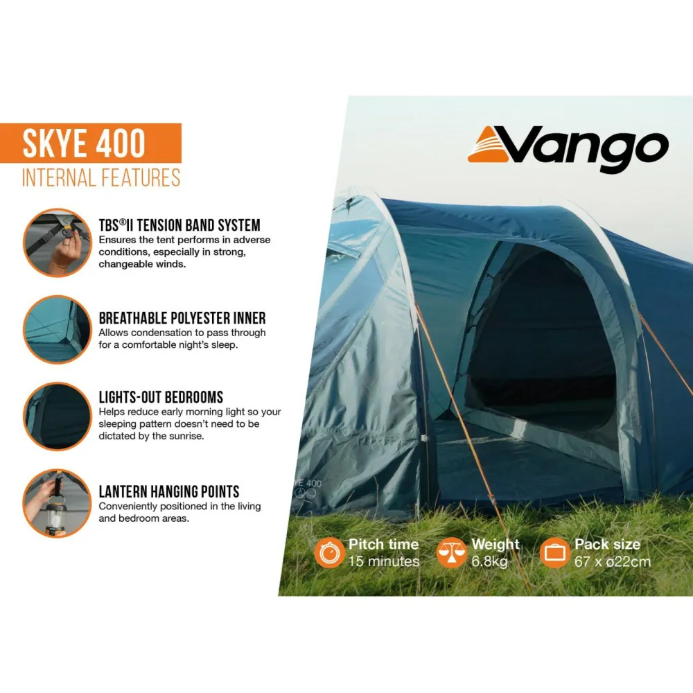 Wer Komfort beim Campen sucht, der ist mit dem 4-Personen-Zelt Skye 400 von Vango gut ausgestattet!