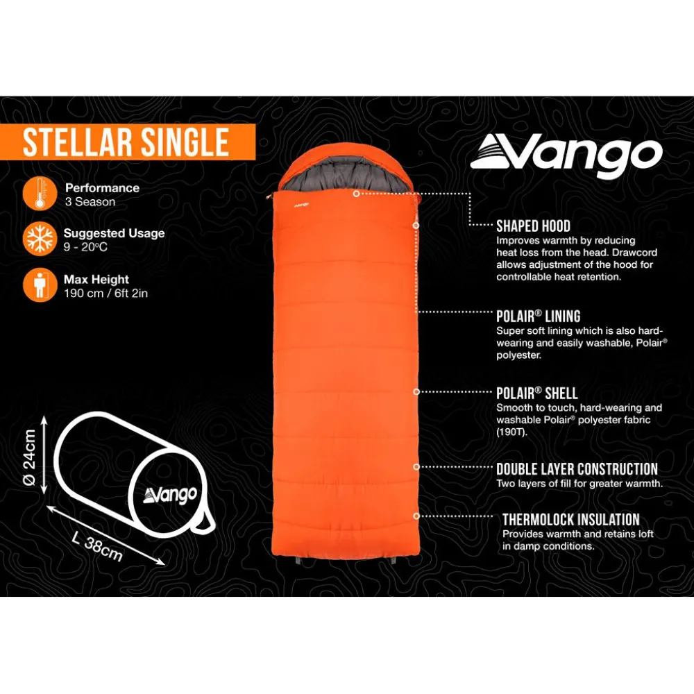Der Stellar Single-Deckenschlafsack von Vango bietet Dir höchsten Komfort und Wärme bei jedem Outdoor-Abenteuer. Entwickelt für Abenteurer oder alle, die mehr Platz benötigen, ist dieser Schlafsack mit einer hochwertigen Kunstfaser-Füllung ausgestattet, die für überragende Haltbarkeit, Wärme und ein leichtes Tragegefühl sorgt. Das glatte, strapazierfähige Polair-Shell und das superweiche Polair-Polyester-Futter sorgen für eine kuschelige Nachtruhe.
