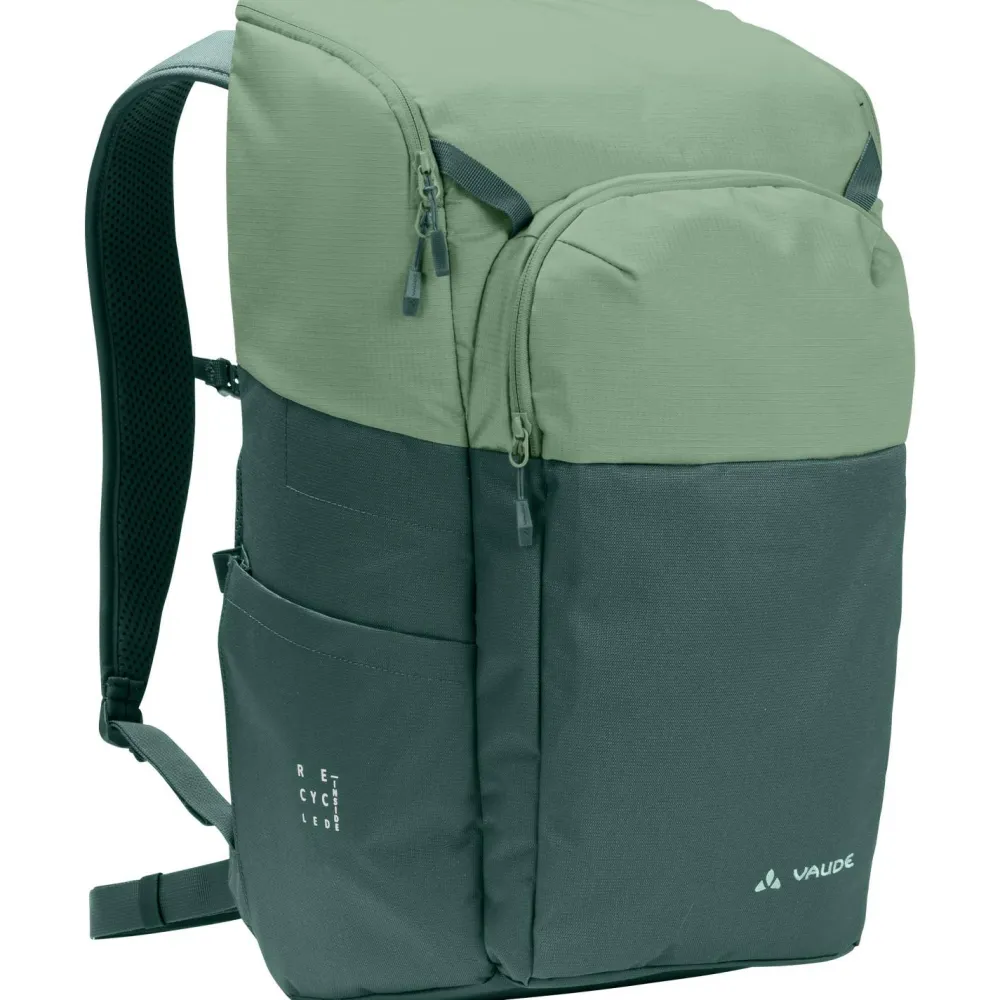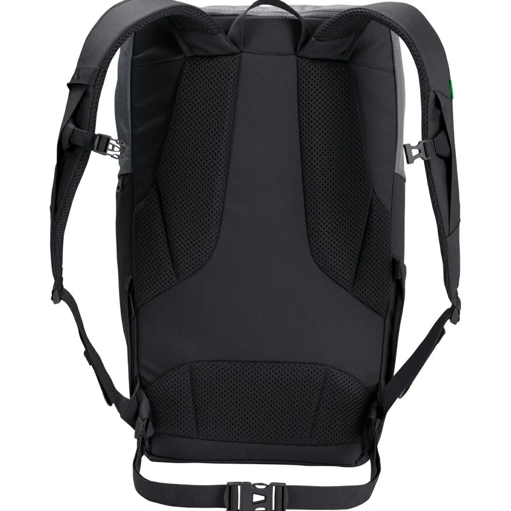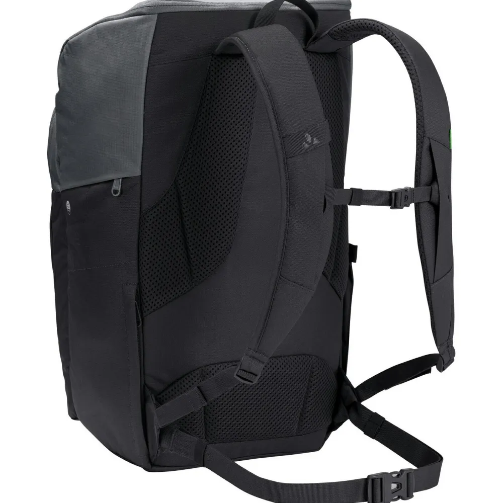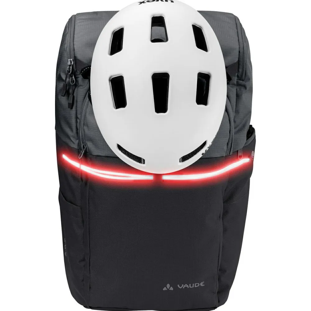 Vaude stattet den robusten Albali II Daypack mit wasserabweisender Eco Finish Behandlung und wetterfester PU-Beschichtung aus. Mit 32 Liter Stauraum bietet der Stadtrucksack viel Platz für alle möglichen Ausrüstungsgegenstände, Accessoires und Einkäufe. Unter anderem verfügt er über ein 15,6“ großes Laptopfach, ein Schlüsselfach, ein extra Frontfach mit Reißverschluss und eine praktische Helmhalterung. Der Albali II ist „LED ready“, d.h. er kann mit einem passenden LED Lichtleiter-Set von Vaude ergänzt werden und ist dann bei Dunkelheit besonders gut zu erkennen.
