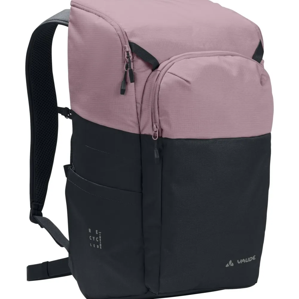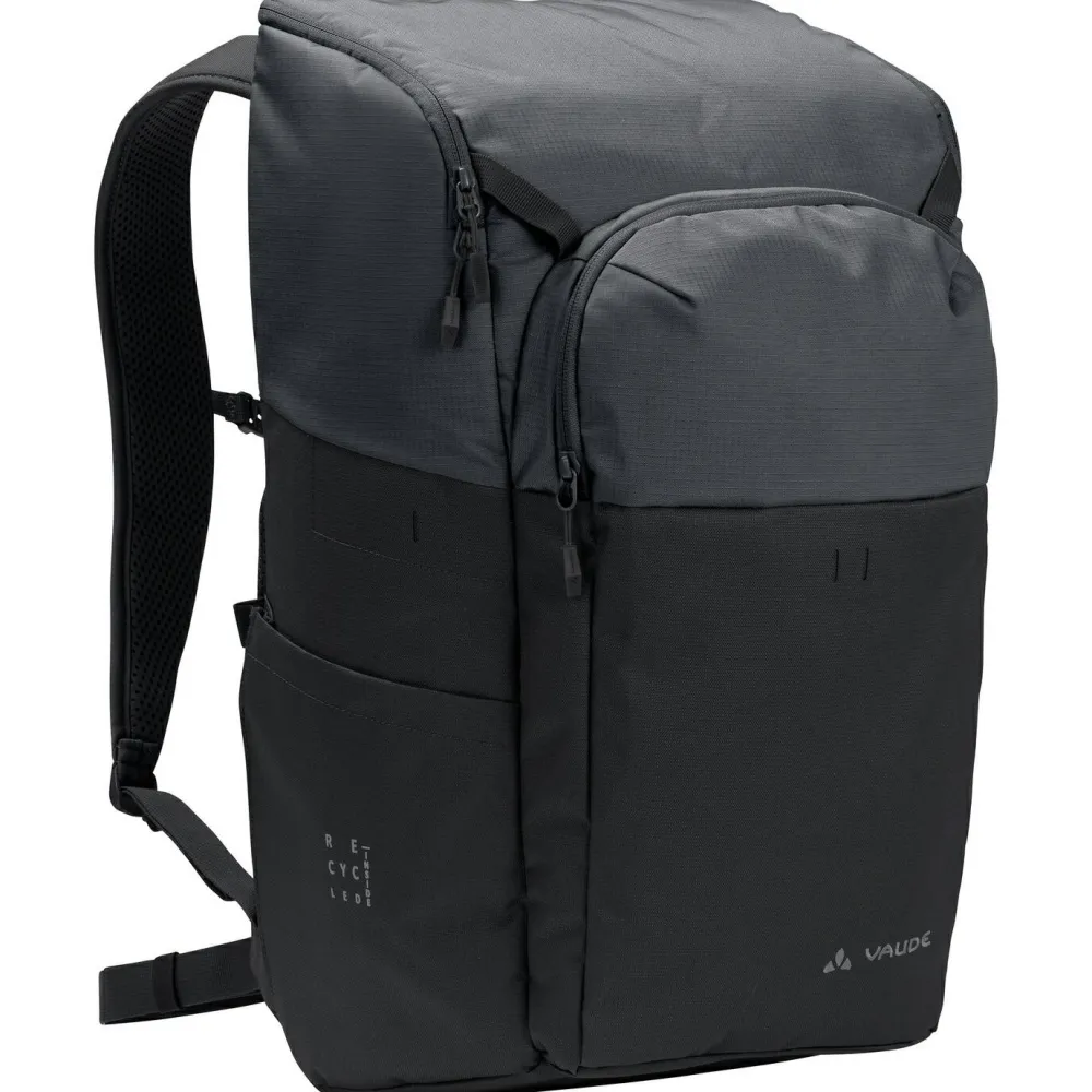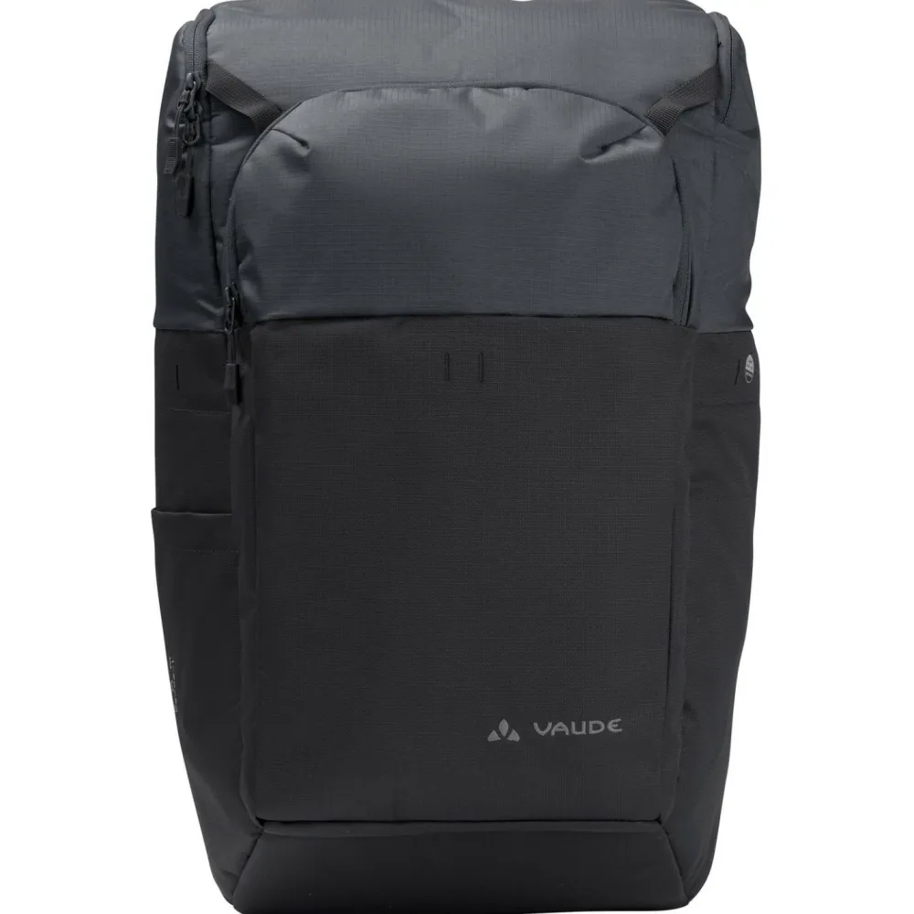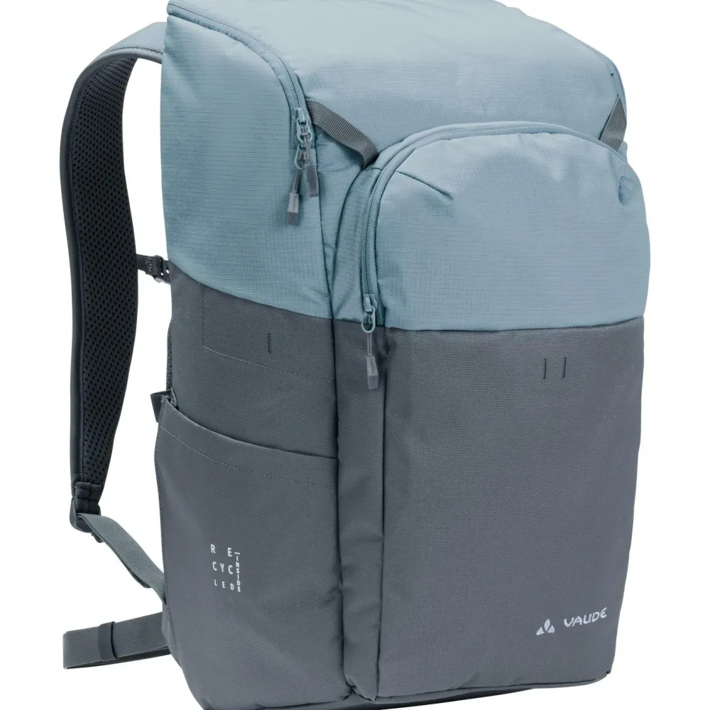 Vaude stattet den robusten Albali II Daypack mit wasserabweisender Eco Finish Behandlung und wetterfester PU-Beschichtung aus. Mit 32 Liter Stauraum bietet der Stadtrucksack viel Platz für alle möglichen Ausrüstungsgegenstände, Accessoires und Einkäufe. Unter anderem verfügt er über ein 15,6“ großes Laptopfach, ein Schlüsselfach, ein extra Frontfach mit Reißverschluss und eine praktische Helmhalterung. Der Albali II ist „LED ready“, d.h. er kann mit einem passenden LED Lichtleiter-Set von Vaude ergänzt werden und ist dann bei Dunkelheit besonders gut zu erkennen.