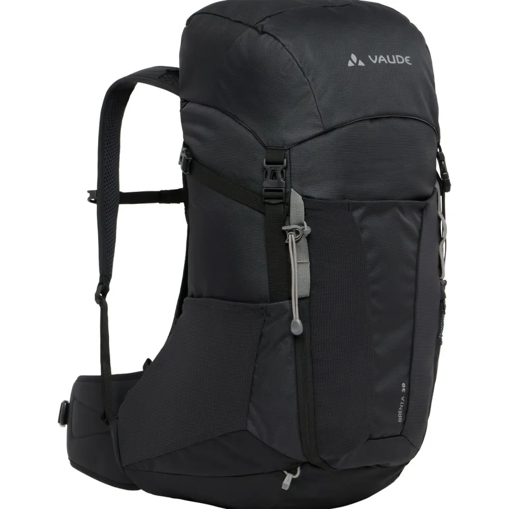 Der Brenta 30 von Vaude ist ein kompakter, sportlicher und top ausgestatteter Wanderrucksack mit ausgezeichneter Rückenbelüftung. Sein Tragesystem ist individuell anpassbar und besonders für längere Rücken geeignet. Die ErgoShape-Schultergurte verschaffen optimale Bewegungsfreiheit, während die gepolsterten Hüftflügel mit ihrem praktischen Reißverschluss-Täschchen für Entlastung sorgen. Der Aeroflex 3D 2.0 Netzrücken sorgt derweil für permanente Belüftung von allen vier Seiten und verhindert dadurch den Wärmestau genauso wie die Feuchtigkeitsentwicklung.