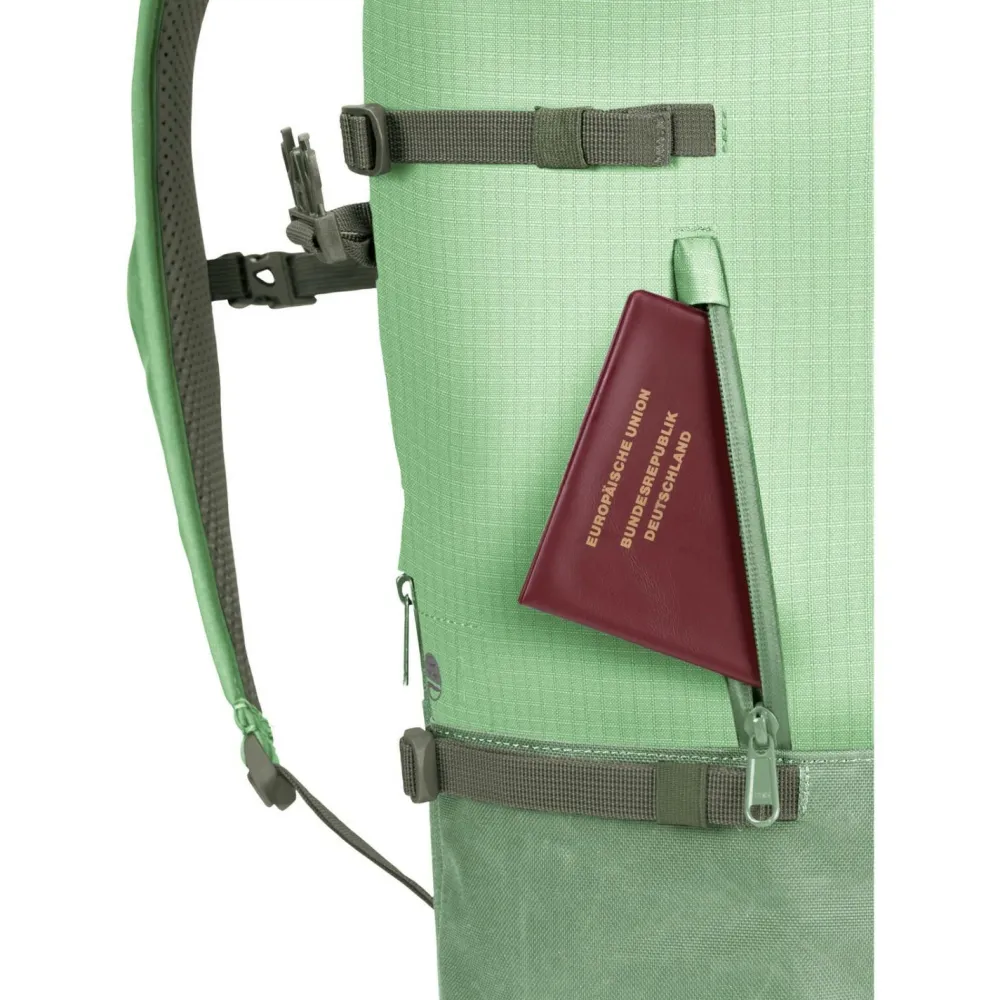 Der Citygo 23 II Daypack von Vaude bietet 23 Liter Stauraum, die bequem per Wickelverschluss verschlossen werden. Mit einer Kombination aus ergonomischen ErgoShape Schultergurten, Brustgurt und gepolstertem Vent Comfort Kontaktrücken trägt sich der schmal geschnittene Rucksack bequem im Alltag und in der Freizeit. Er ist mit einem 13,3“ großen Notebookfach ausgestattet und verfügt über eine seitliche Stretch-Tasche für Trinkflaschen, sowie einen Schlüsselhalter und eine Blinklichthalterung. Vaude fertigt den Rucksack fast vollständig aus recycelten Rohstoffen und macht den Citygo 23 II damit besonders umweltfreundlich.