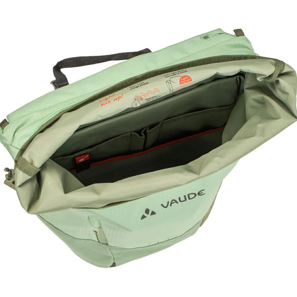 Der Citygo Bike 23 II beinhaltet ein 13,3“ großes Notebookfach, ein gepolstertes Smartphonefach und ein praktisches Organizerfach im Inneren. Außerdem ergänzen ein wetterfester Rollverschluss und eine Blinklichthalterung den Rucksack. Die multifunktionale Vaude Radtasche ist „LED-ready“ und kann bei Bedarf mit dem passenden Lichtleiter-Set nachgerüstet werden.