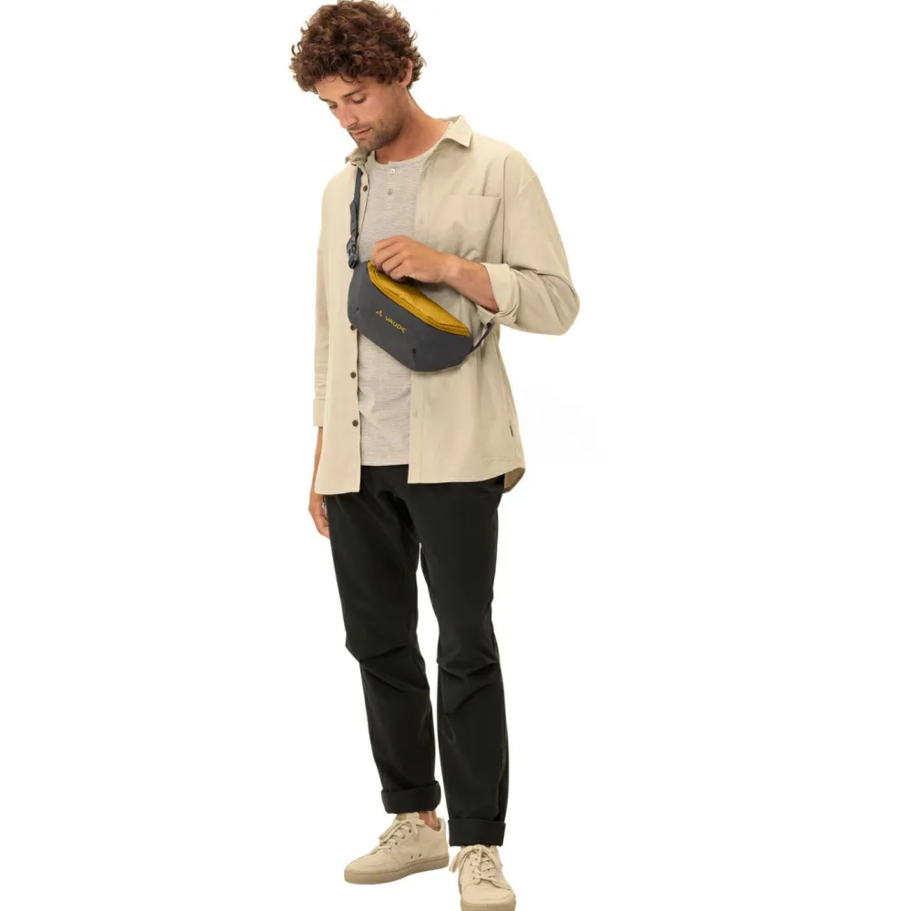 Bei 2 Liter Volumen passen in die Citymove Hüfttasche von Vaude alle wichtigen Alltagsaccessoires, wie Smartphone, Geldbeutel und Schlüssel. Mit ihrem einstellbaren Gurtband mit Steckschnalle kann die Tasche entweder am Bauch, am Rücken oder seitlich über die Schulter getragen werden. Vaude fertigt die Hüfttasche umweltfreundlich aus recyceltem Polyamid und ergänzt das große Hauptfach um ein zusätzliches Fach auf der Rückseite. Außerdem ist die Rückseite bequem gepolstert. Ein praktischer Schlüsselhalter ergänzt die hübsche Tasche im Colorblock Design.