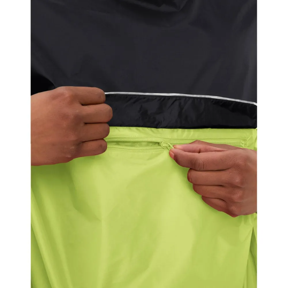 Da kommt kein Tropfen durch: der Covero Poncho II von Vaude hält selbst bei strömendem Regen wunderbar dicht!Der Regenponcho ist aus einem absolut wasserdichten Kunstfasermaterial gefertigt. Das lässt nicht mal den kleinsten Tropfen durch und ist bluesign zertifiziert. Bei der Herstellung wurde also streng auf die Einhaltung von Richtlinien zum Umweltschutz und Nachhaltigkeit geachtet. Die Kapuze ist angeschnitten und in der Weite regulierbar. Ein elastischer Bauchgurt an der Innenseite hält den Poncho verrutschfrei an seinem Platz. Die Fronttasche kann zum Verstauen des Ponchos verwendet werden. Zwei seitliche Eingriffe sowie Armschlaufen sind auch mit dabei. Reflektierende Elemente schaffen eine bessere Verortbartkeit bei schlechten Sichtverhältnissen. Wenn also ein plötzlicher Wolkenbruch droht die Tour zu vermasseln, einfach den Covero Poncho II überwerfen und weiter geht’s!