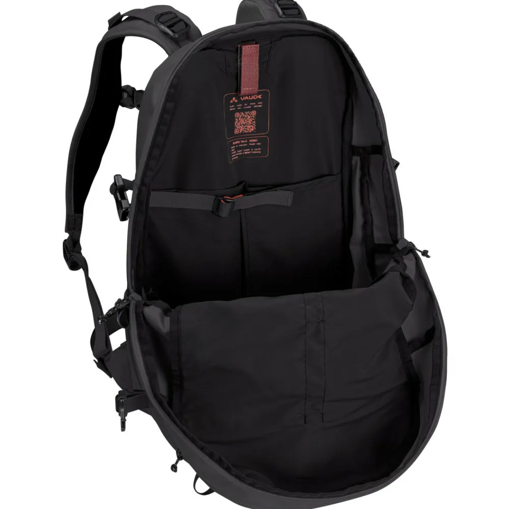 Beim Outdoorsport ist der Elope 18+4 Rucksack von Vaude besonders vielseitig einsetzbar. Er ist schmal geschnitten, verfügt über ein komfortables und gut belüftetes Tragesystem und ist für die Verwendung von Trinksystemen vorbereitet. Der Rucksack wird aus recyceltem Polyester gefertigt und vor Nässe mit PU-Beschichtung und Eco Finish Behandlung geschützt. Mittels Reißverschluss lässt sich das 18 Liter Volumen um weitere 4 Liter auf insgesamt 22 Liter vergrößern. Stockhalterung, Blinklichthalter und ein Organizerfach in der Fronttasche ergänzen den multifunktionalen Rucksack.