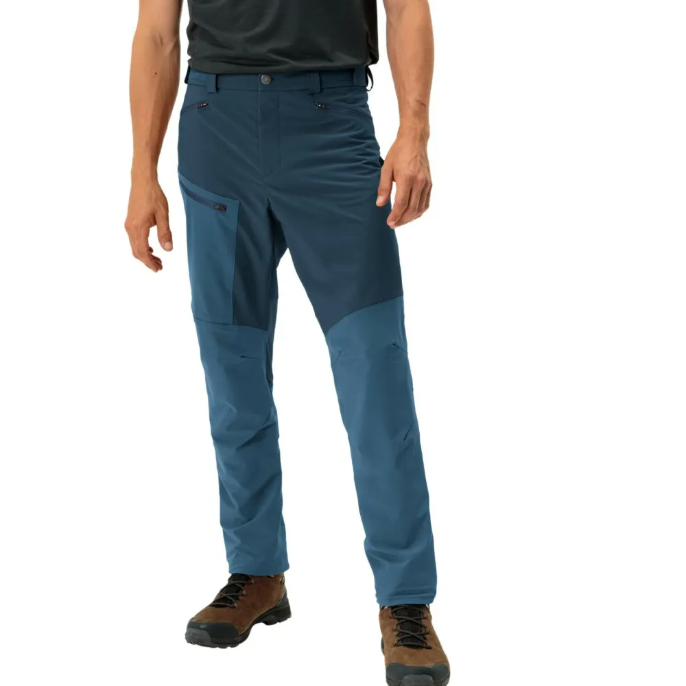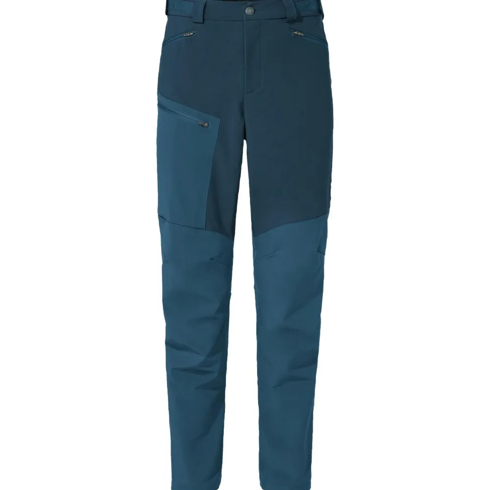 Die Elope Pants Trekkinghose von Vaude ist an den Knien vorgeformt und lässt sich bequem am Hosenbund anpassen. Auch die Weite der Beinabschlüsse ist mit den integrierten Kordelzügen bequem einstellbar. Vaude stattet die Hose mit zwei Fronttaschen und einer zusätzlichen Beintasche aus. Alle Taschen verfügen über Reißverschlüsse.