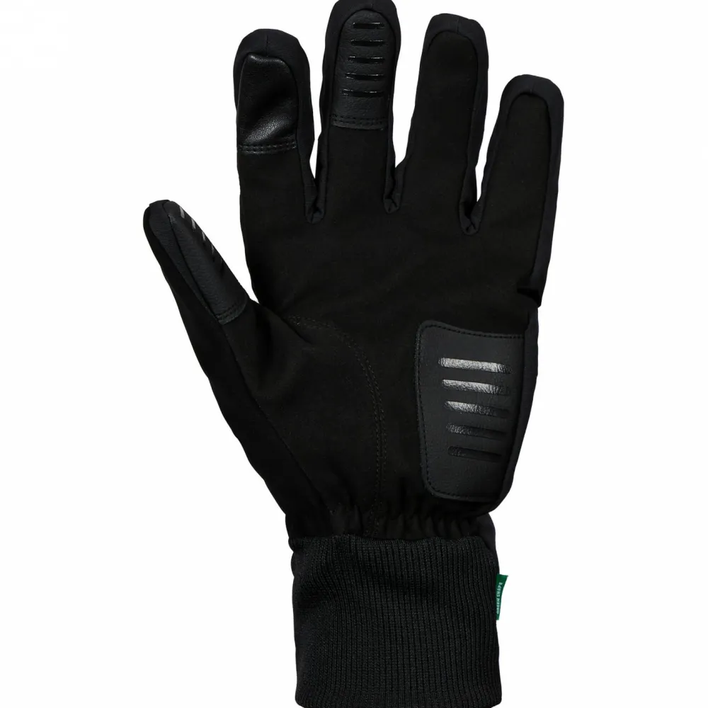 Eine hervorragende Wahl bei kalten Temperaturen und eisigem Wind: die Hanko Gloves II von Vaude! Die Radhandschuhe sind winddicht, stretchig und kommen mit einer sehr praktischen Ausstattung. Denn neben ihrem atmungsaktiven, winddichten Materialmix hat Vaude die Handschuhe mit einigen sehr umsichtigen Details ausgestattet. So sind die Handinnenfläche, sowie der Daumen und Mittelfinger mit rutschhemmenden silikonisierten Prints ausgestattet. Daher ist der Lenker fest im Griff und die Bremsen lassen sich ebenfalls feinfühlig und wohl dosiert bedienen. Die Radhandschuhe sind dank einer PU-Membran absolut winddicht, an den Spitzen der Zeigefinger haben die Hanko Gloves II ein spezielles Material zur Bedienung von Tochscreens. Für eine bessere Sichtbarkeit im Straßenverkehr sind die Handschuhe mit reflektierenden Elementen am Handrücken ausgestattet. Die Vaude Hanko Gloves II sind sehr komfortable, zuverlässig winddichte Radhandschuhe mit umsichtigen Detaillösungen!