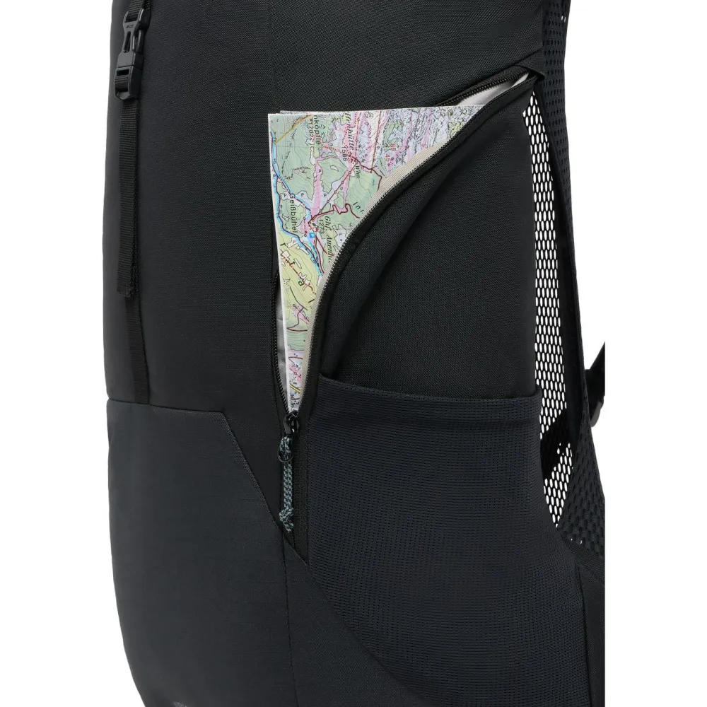 Der Jura 28 von Vaude ist ein kompakter und gut ausgestatteter Wanderrucksack mit einem langen Rücken. Sein von einem leichten Hüftgurt unterstütztes Aeroflex 3D 2.0 Tragesystem belüftet den Rücken permanent von allen vier Seiten und ist sowohl gegen Wärmestau als auch gegen Feuchtigkeitsbildung sehr wirksam. Die ergonomisch geformten Schultergurte tragen dazu die optimale Bewegungsfreiheit und noch mehr Komfort bei. Der zwischen ihnen liegende Brustgurt ist mit einem Trinkschlauchhalter versehen.