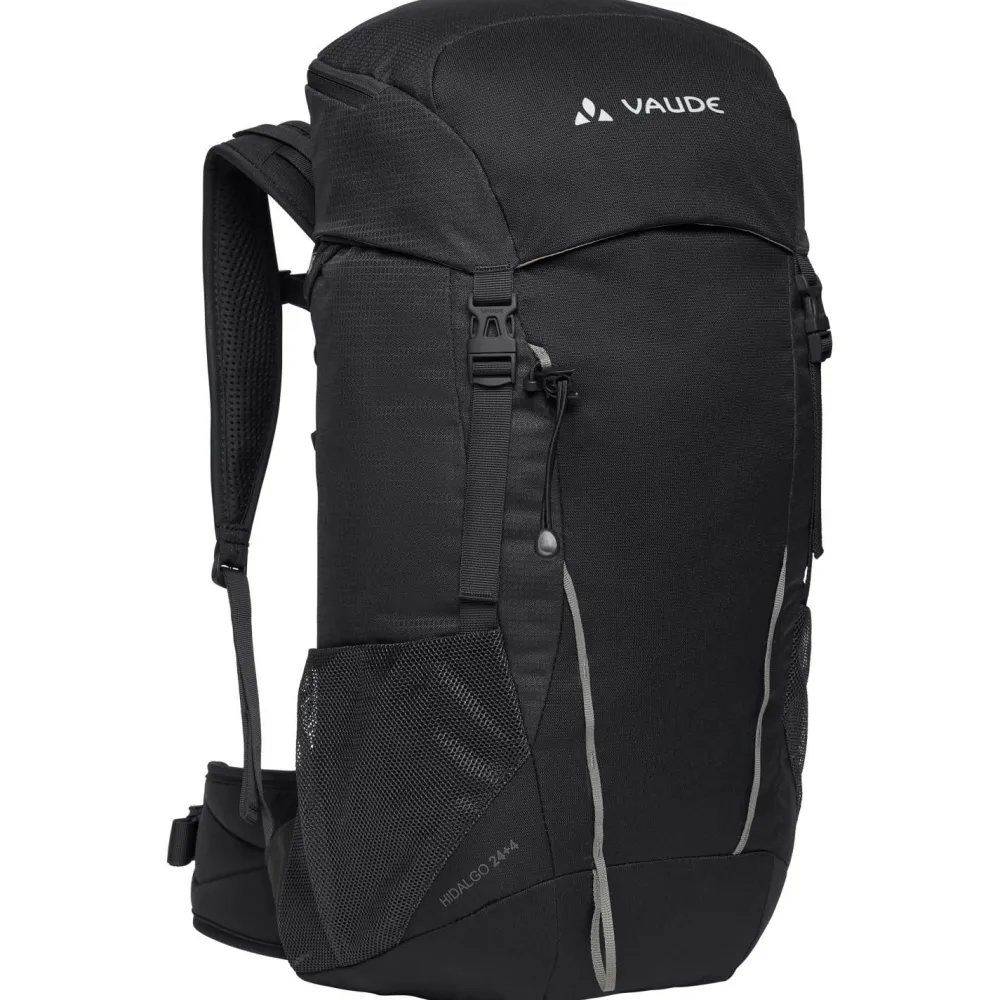 Der Kid’s Hidalgo 24+4 Kinderrucksack von Vaude eignet sich optimal für größere Kinder und Jugendliche. Da seine Deckelhöhe variabel ist, kann der Toploader von 24 Liter Volumen auf bis zu 28 Liter erweitert werden. Mit verstellbarem Brustgurt, leichtem Hüftgurt und gepolsterten ErgoShape-Schultergurten trägt sich der sportliche Rucksack perfekt auf Wanderungen, Bergtouren und Hüttentouren. Der Kid’s Hidalgo 24+4 sorgt dabei für volle Bewegungsfreiheit und ist bereits für die Aufnahme von Trinksystemen vorbereitet. Ein extra Deckelfach sowie zwei seitliche Mesh-Taschen und eine Stockhalterung ergänzen den wasserabweisenden Toploader.